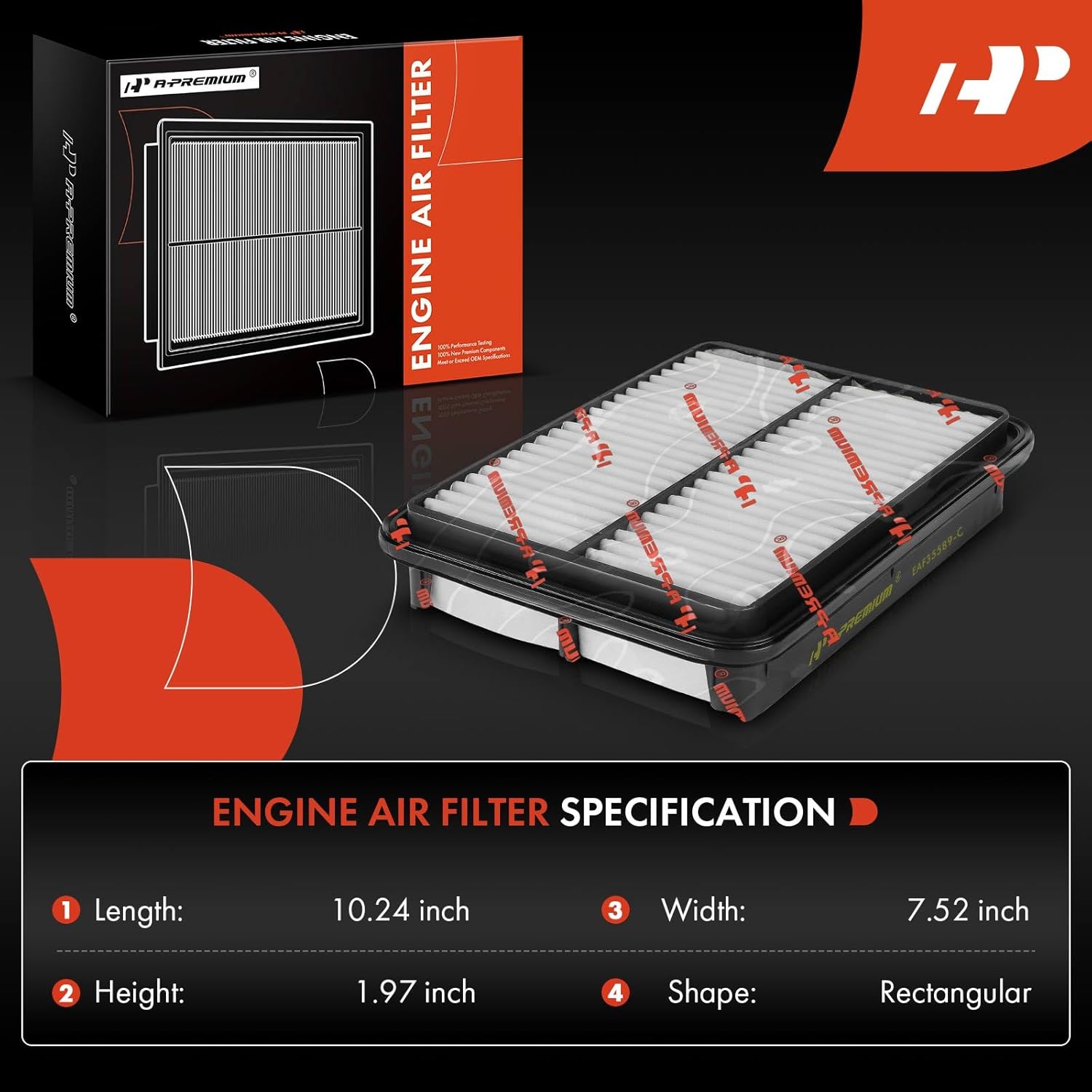 O Filtro de Ar do Motor A-Premium utiliza um meio de filtração fino que captura todos os tipos de detritos sem obstruir o fluxo de ar. Isso resulta na remoção de partículas perigosas, melhorando o desempenho do motor e aumentando a eficiência do mesmo. Para garantir que o filtro de ar do motor forneça ar limpo ao seu motor, recomenda-se a substituição a cada 12 meses ou 12.000 milhas, ou conforme especificado pelo fabricante do veículo.