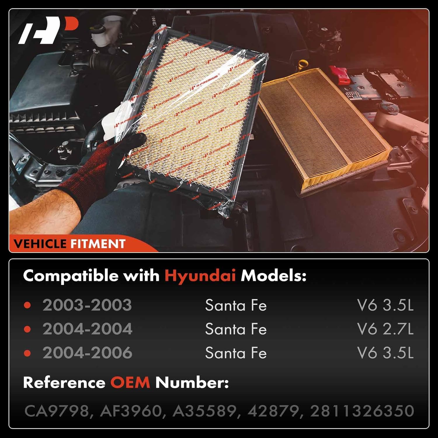 Resposta: Este filtro é especificamente projetado para os modelos Hyundai Santa Fe 2003-2006 com motores V6 de 2.7L e 3.5L.