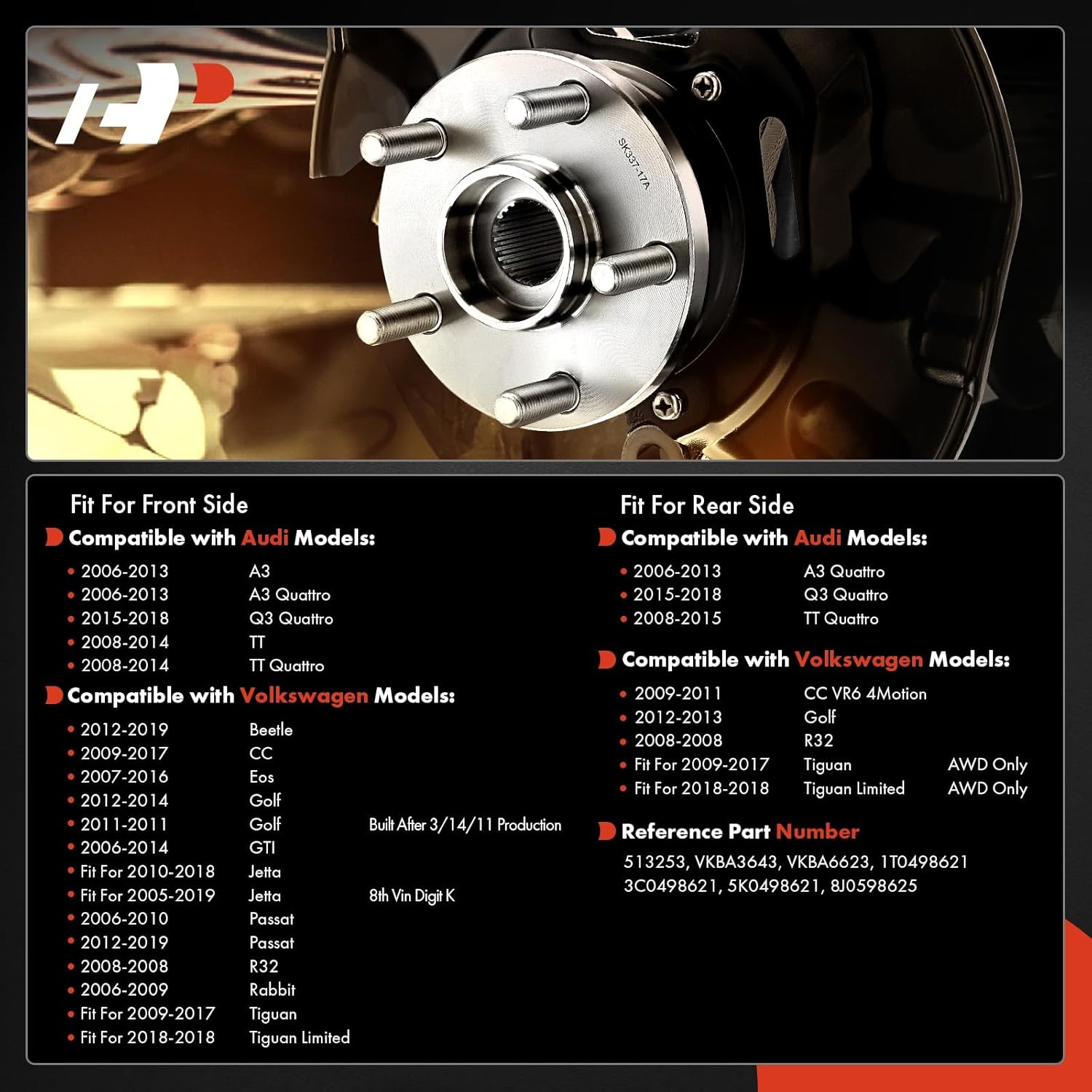 – Fit Para Lado Traseiro: Compatível com Audi A3 Quattro (2006-2013), Q3 Quattro (2015-2018), TT Quattro (2008-2015); Volkswagen CC VR6 4Motion (2009-2011), Golf (2012-2013), R32 (2008), Tiguan (2009-2017 AWD), Tiguan Limited (2018 AWD).