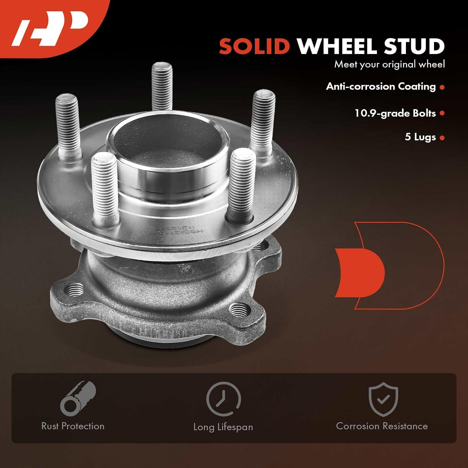 [Alta Capacidade de Carga]: Os rolamentos e o conjunto de cubo de roda A-Premium são equipados com rolamentos de esferas que proporcionam uma capacidade de carga axial e radial excepcional, adequando-se às condições diárias de condução. Os pinos de roda são fabricados em aço resistente, com especificações idênticas às originais, garantindo que se encaixem perfeitamente no disco de freio, roda e porcas, fazendo com que os cubos de roda antigos e enferrujados pareçam novos.
