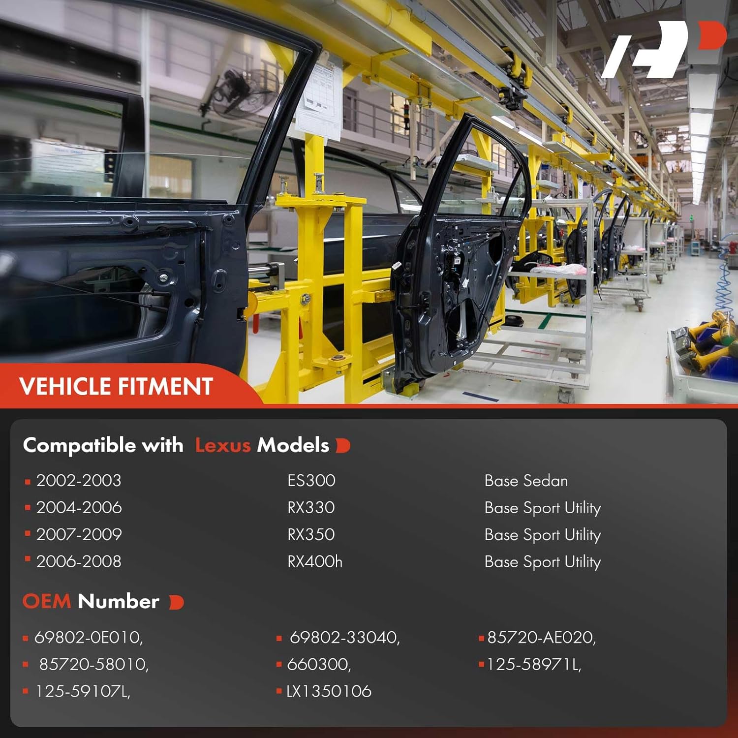 ‎69802-0E010, 698020E010, 69802-33040, 6980233040, 85720-AE020, 85720AE020, 85720-58010, 8572058010, 660300, 125-58971L, 12558971L, 125-59107L, 12559107L, LX1350106