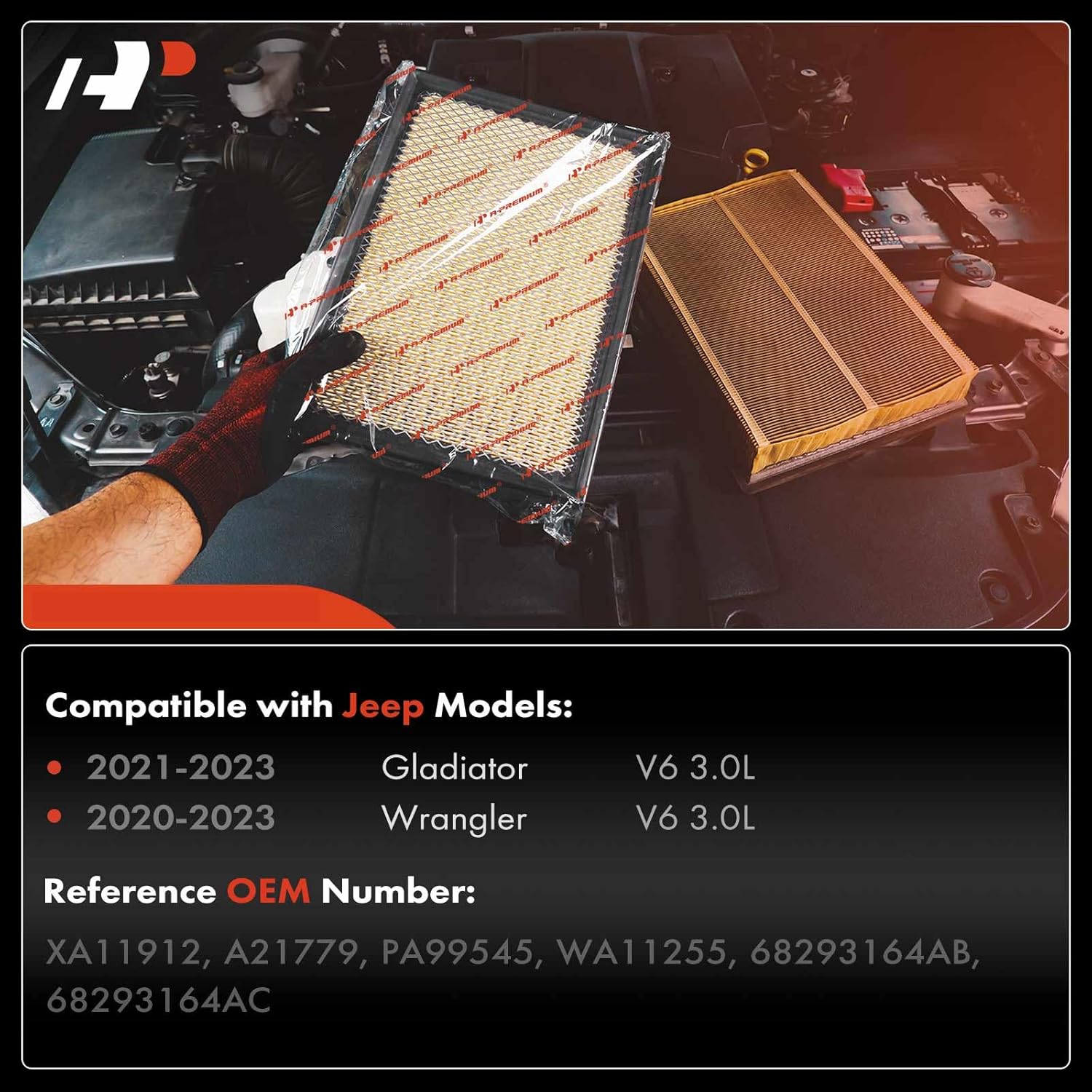 2 avaliações para Filtro de Ar do Motor A-Premium Compatível com Jeep JL Wrangler 2020-2023 e JT Gladiator 2021-2023, 3.0L, Substitui # XA11912, 68293164AB