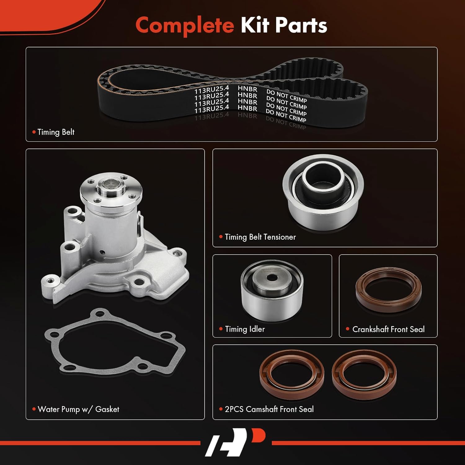 Resposta: Sim, o kit inclui todos os componentes essenciais, como a correia dentada, tensionador, polia de idler, selos e bomba d’água.