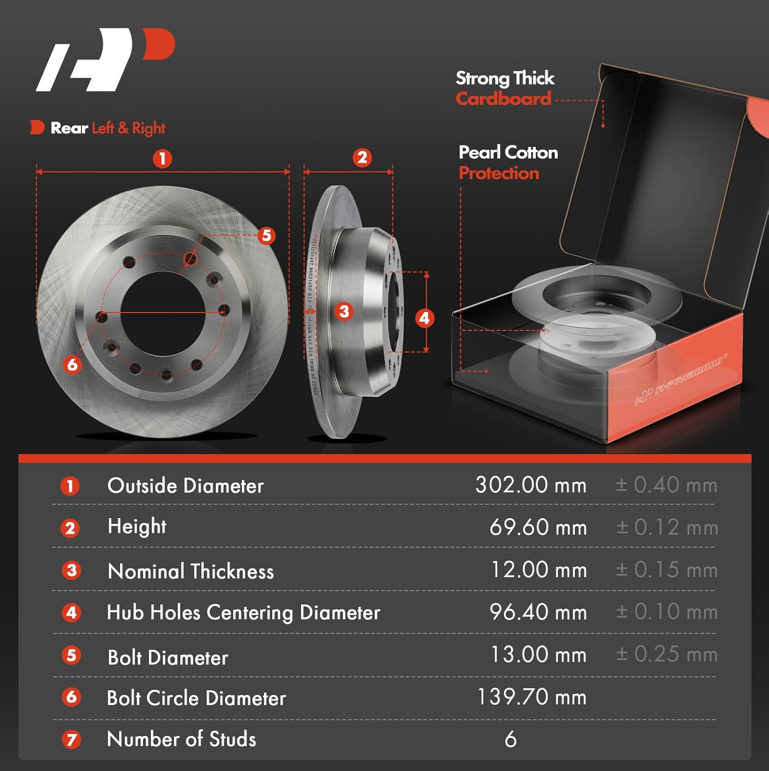 [Número de Referência]: Os discos de freio A-Premium possuem os números de referência R-31431 e R-31430 para os discos ventilados dianteiros e sólidos traseiros, respectivamente. As pastilhas de freio têm os números de referência P-1202 e P-1284. Este kit é adequado para os lados esquerdo e direito, tanto do motorista quanto do passageiro.