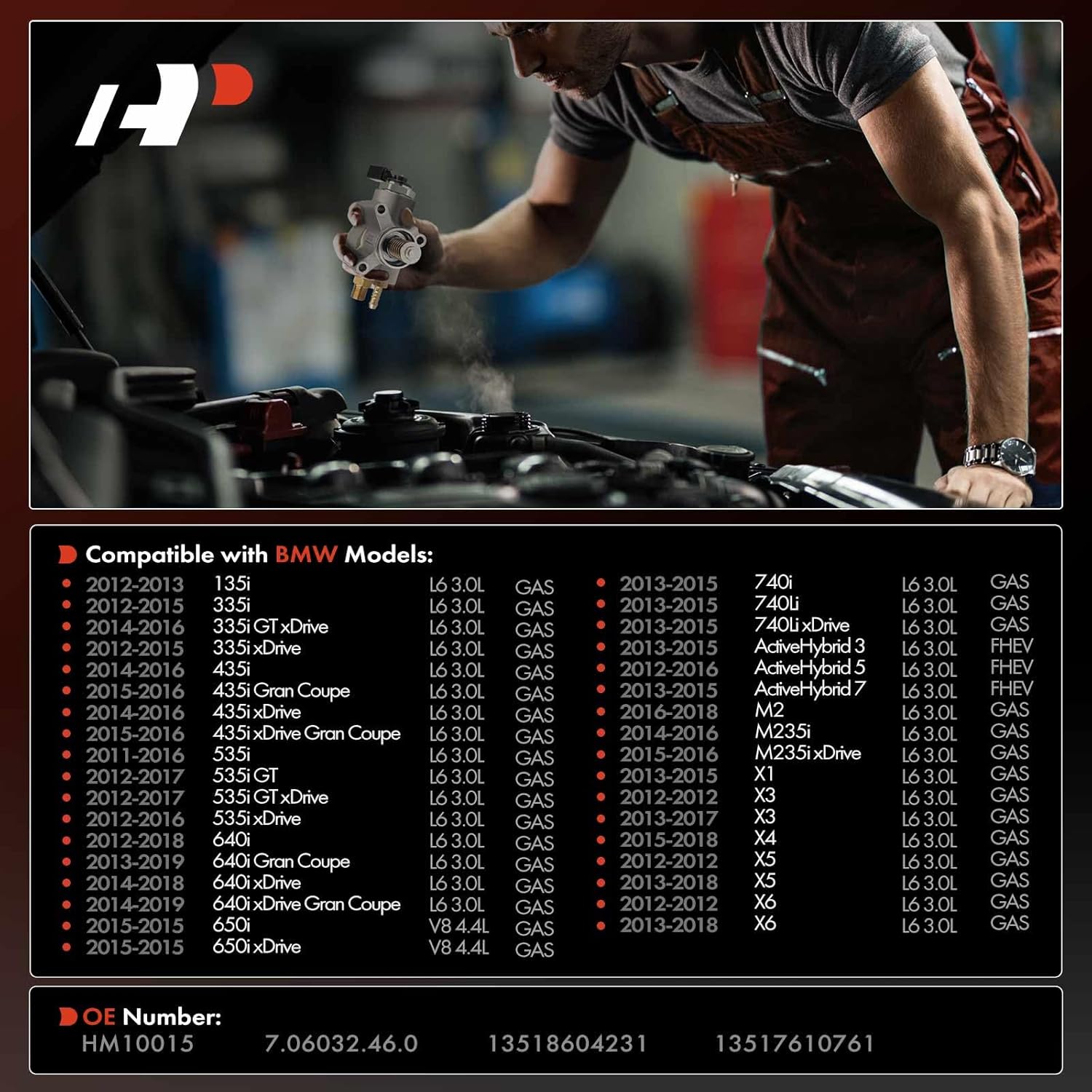 A Bomba de Combustível de Alta Pressão A-Premium é a escolha ideal para proprietários de veículos BMW que buscam desempenho e confiabilidade. Compatível com uma ampla gama de modelos, incluindo o BMW 335i, 435i, 535i, 640i GT, M235i, 650i, 740Li, M2, ActiveHybrid 3, 5, 7, e as linhas X1, X3, X4, X5 e X6 a partir de 04/2012, esta bomba é projetada para atender às exigências dos motores L6 3.0L, garantindo uma entrega de combustível eficiente e consistente.