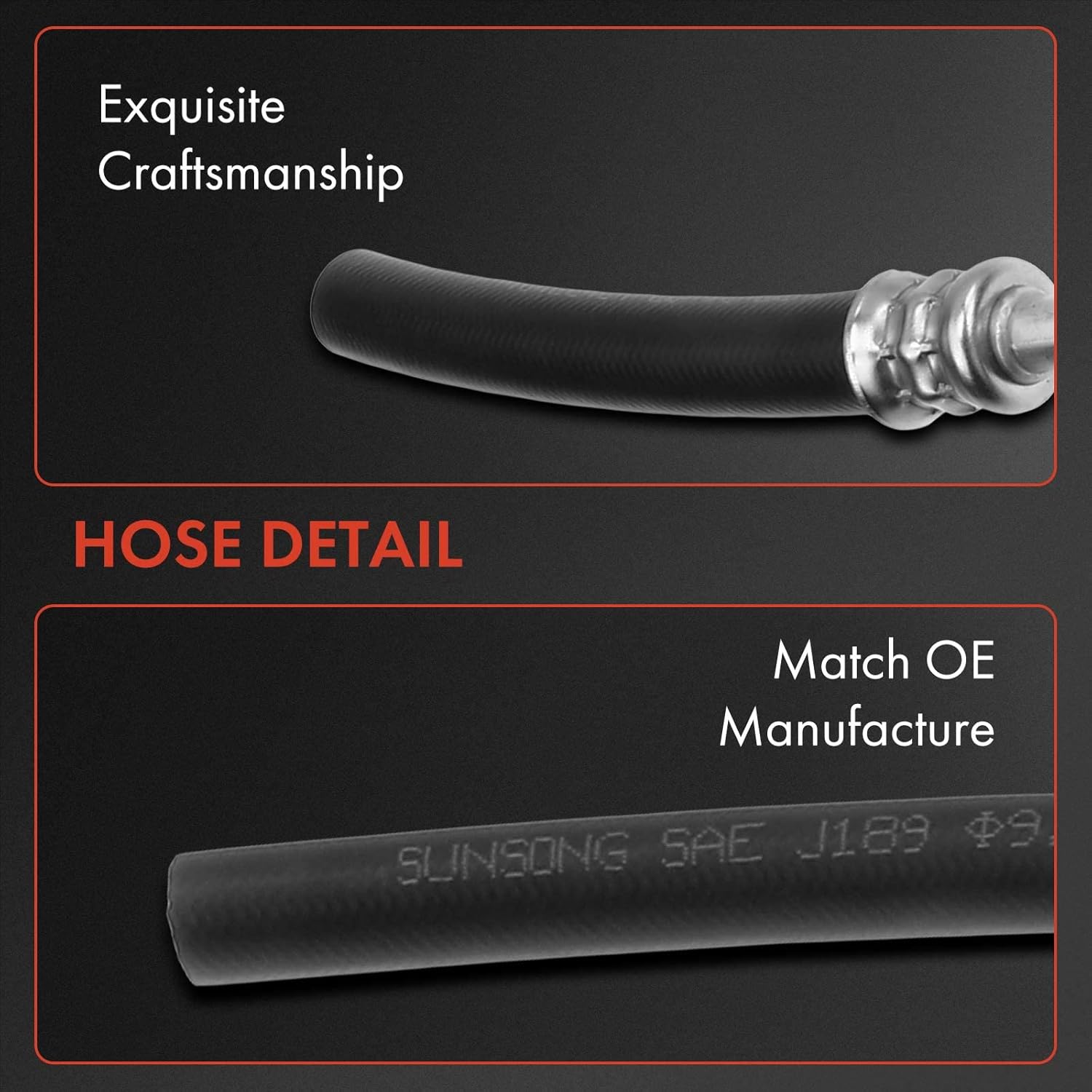- Desempenho: Este conjunto de mangueiras de retorno para direção hidráulica é projetado para suportar uma pressão de trabalho de até 250 psi e temperaturas que variam de -40℃ a 254℃. Fabricado em borracha multi-camada, é resistente à corrosão, garantindo durabilidade e eficiência.