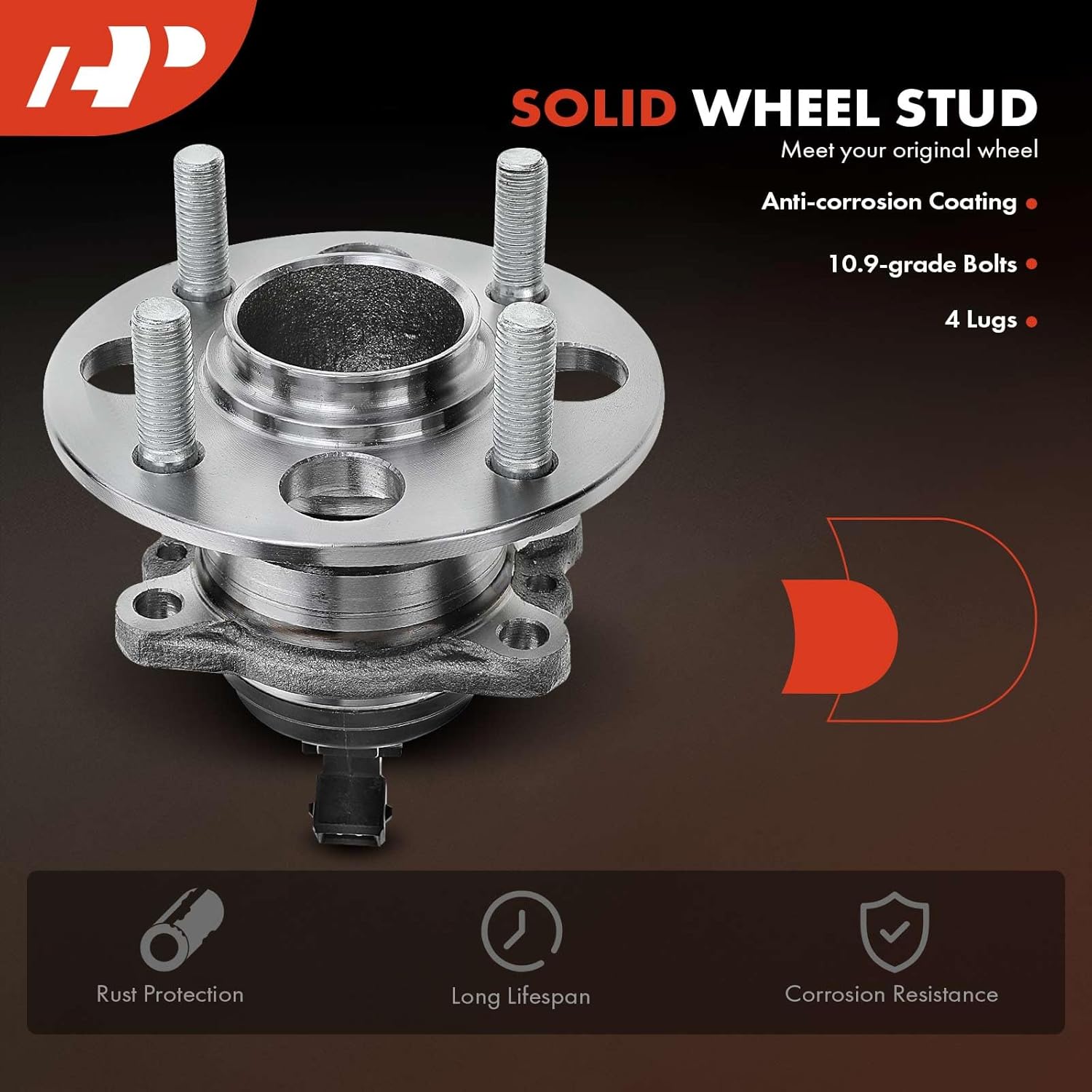 Alta Capacidade de Carga: O conjunto de rolamentos e cubo de roda A-Premium é equipado com rolamentos de esferas que oferecem uma capacidade de carga axial e radial excepcional, atendendo às condições de condução diárias. Os pinos de roda são fabricados em aço resistente, com especificações idênticas às originais, permitindo que o conjunto se integre perfeitamente ao disco de freio, roda e porcas, fazendo com que os rolamentos antigos e enferrujados pareçam novos.