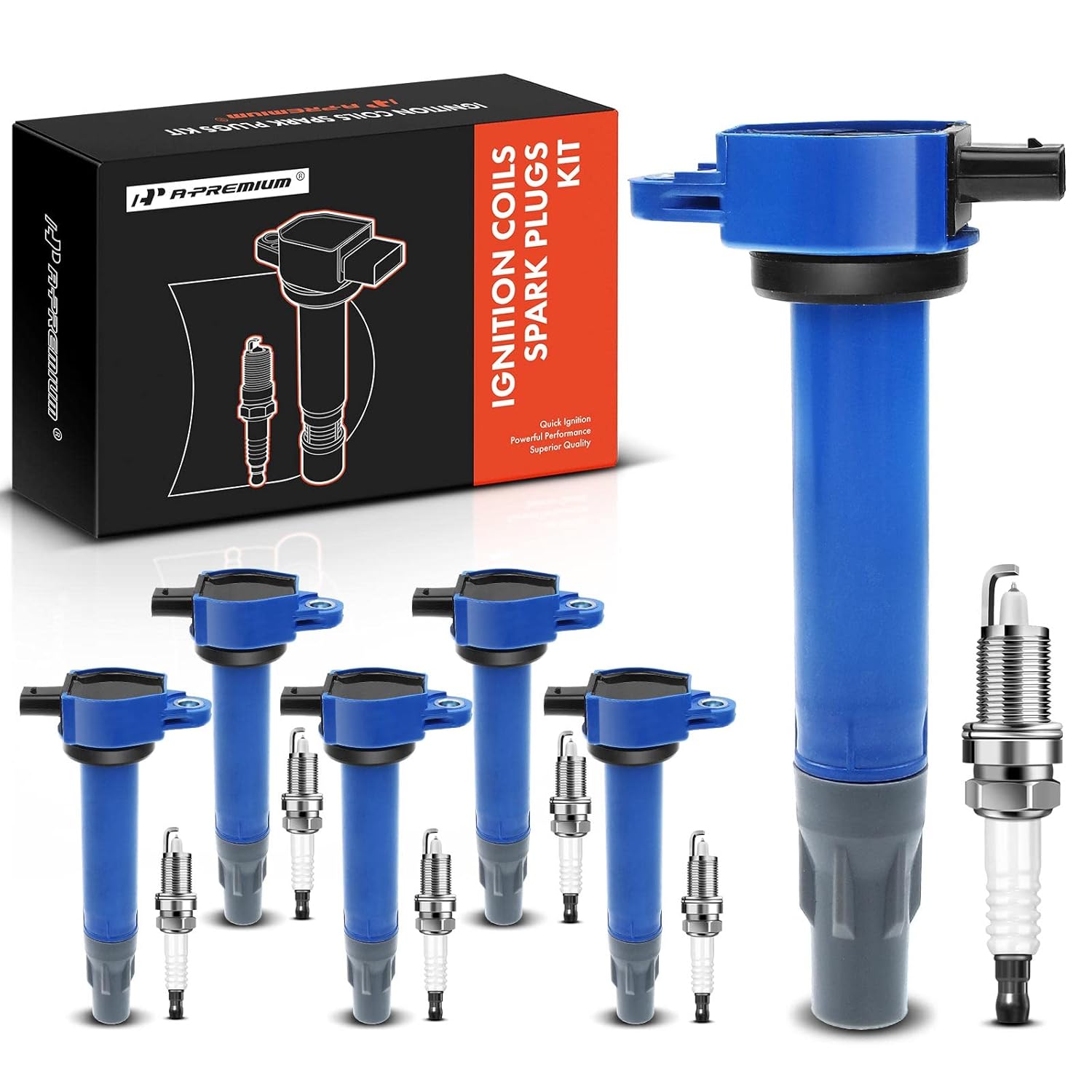 Conjunto A-Premium de 6 Bobinas de Ignição com Velas de Ignição de Irídio (Vermelho) compatível com Chrysler 300 (2006-2010), Sebring (2006-2010) e Town. Este kit oferece desempenho superior, melhorando a eficiência do motor e a economia de combustível. As velas de irídio garantem uma ignição mais rápida e confiável, resultando em arranques mais suaves e menor emissão de poluentes. Fácil instalação e compatibilidade garantida, ideal para quem busca qualidade e durabilidade em peças de reposição.