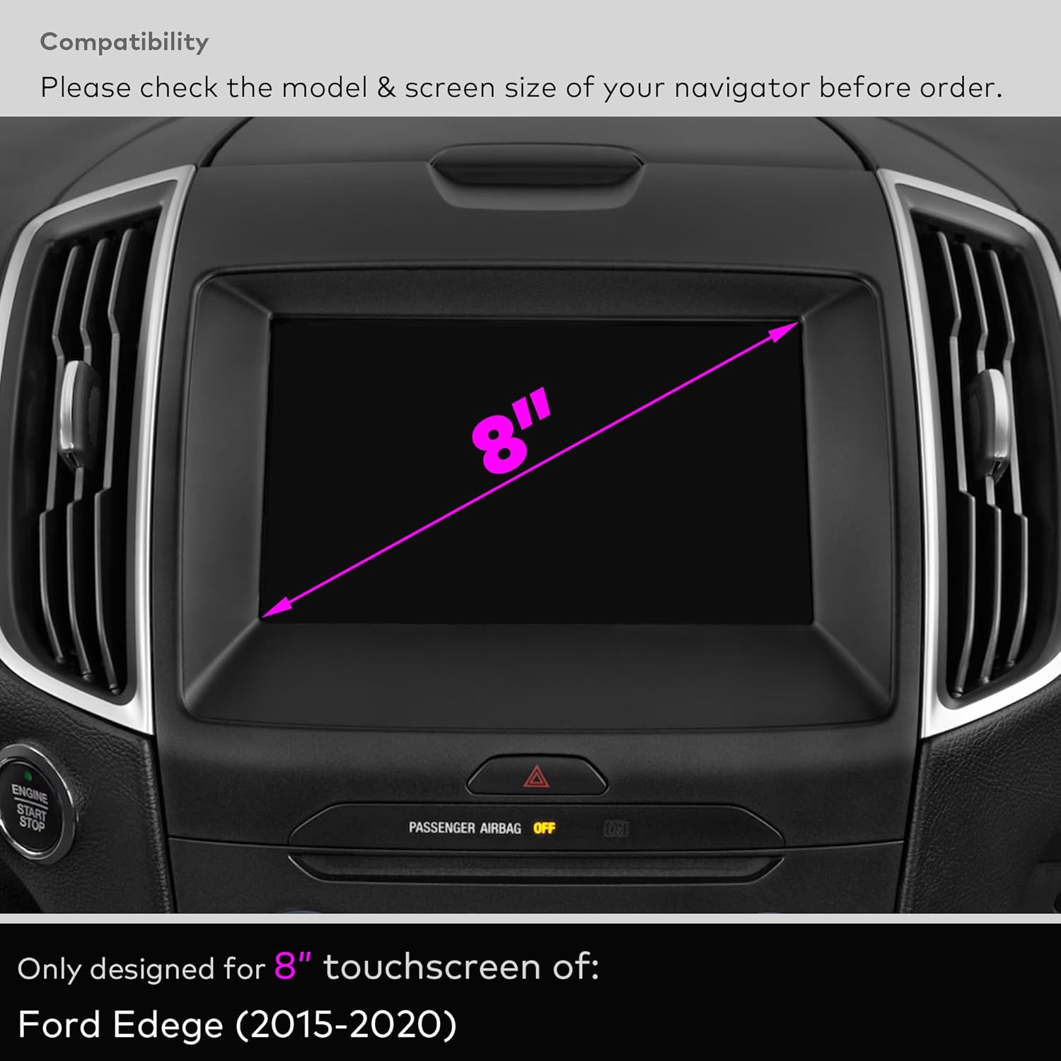 – Compatibilidade: Projetado para Ford Edge 2015, 2016, 2017, 2018, 2019 e 2020 SE/SEL/Titanium/Sport/ST com tela sensível ao toque de 8 polegadas.