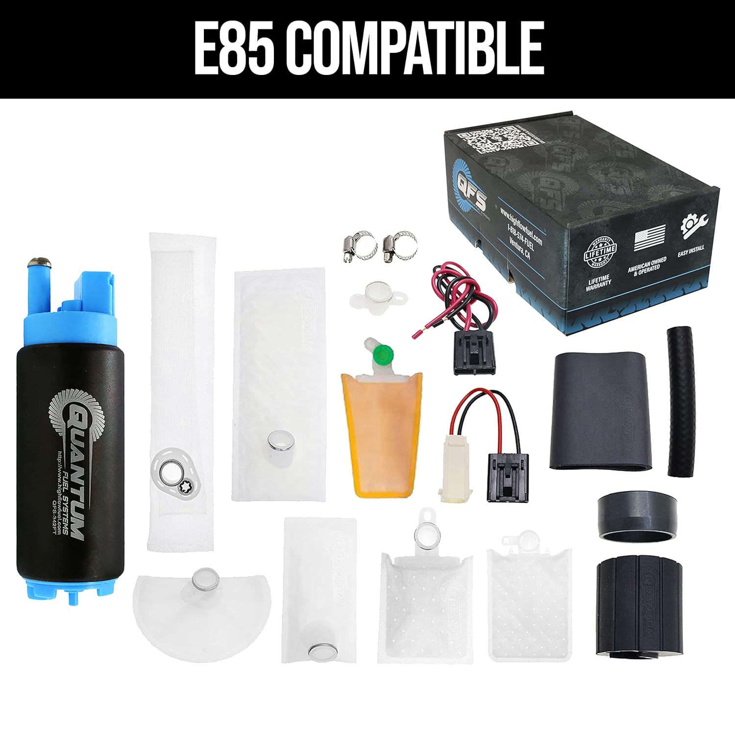 A Bomba de Combustível QFS 340LPH E85/Flex é a escolha definitiva para entusiastas de automóveis que buscam desempenho superior e confiabilidade inigualável. Projetada com a mais alta engenharia de pico, esta bomba garante um equilíbrio perfeito entre volume, pressão e ângulo do impulsor da turbina, prevenindo o superaquecimento do combustível e assegurando uma operação sem problemas por mais de 100.000 milhas.