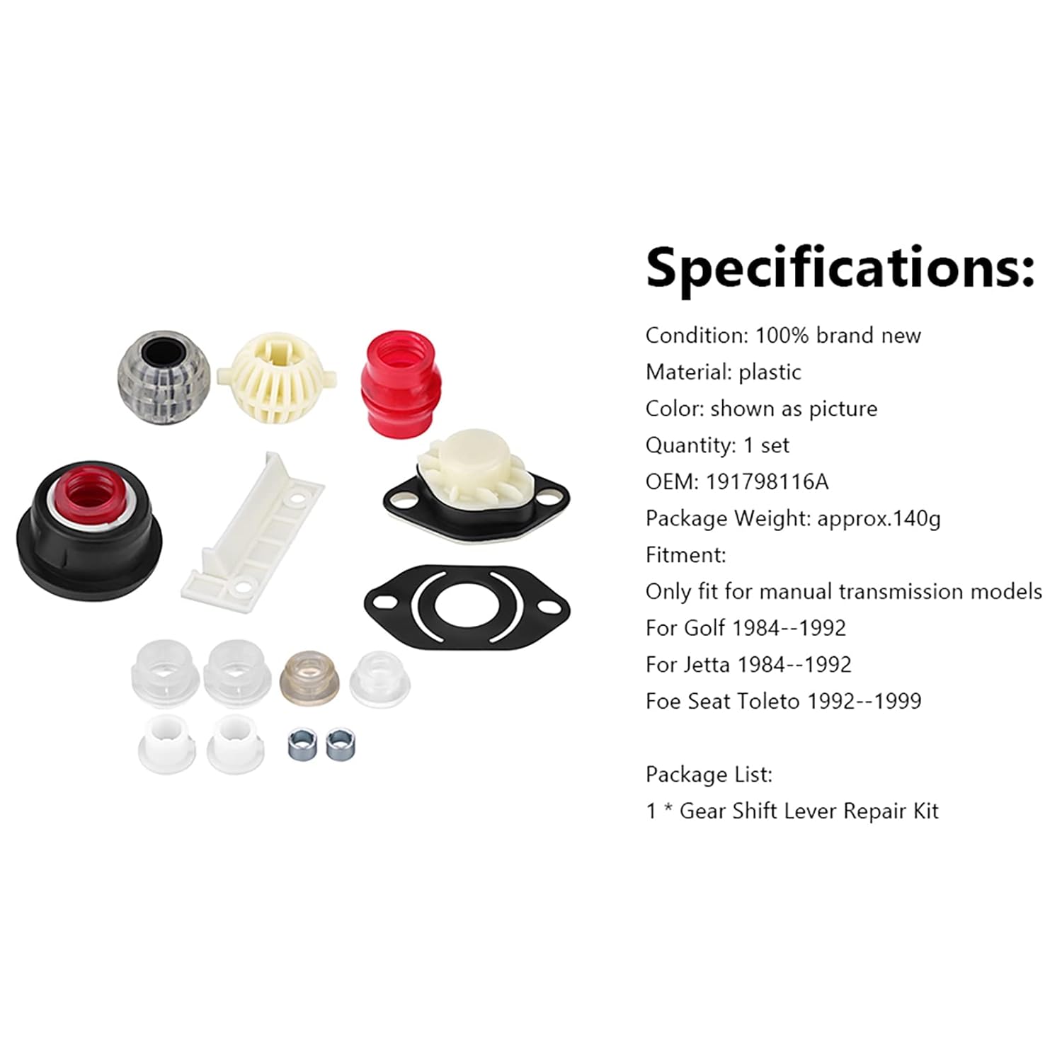 O Kit de Reparação da Alavanca de Câmbio Qiilu 191798116A é a solução ideal para quem busca restaurar a funcionalidade do câmbio manual do seu Seat Toledo. Com um design que respeita as especificações originais da fábrica, este kit oferece um desempenho estável e confiável, garantindo que sua experiência de condução seja tão suave quanto no primeiro dia. Antes de realizar a compra, é fundamental confirmar a compatibilidade do produto com seu veículo.