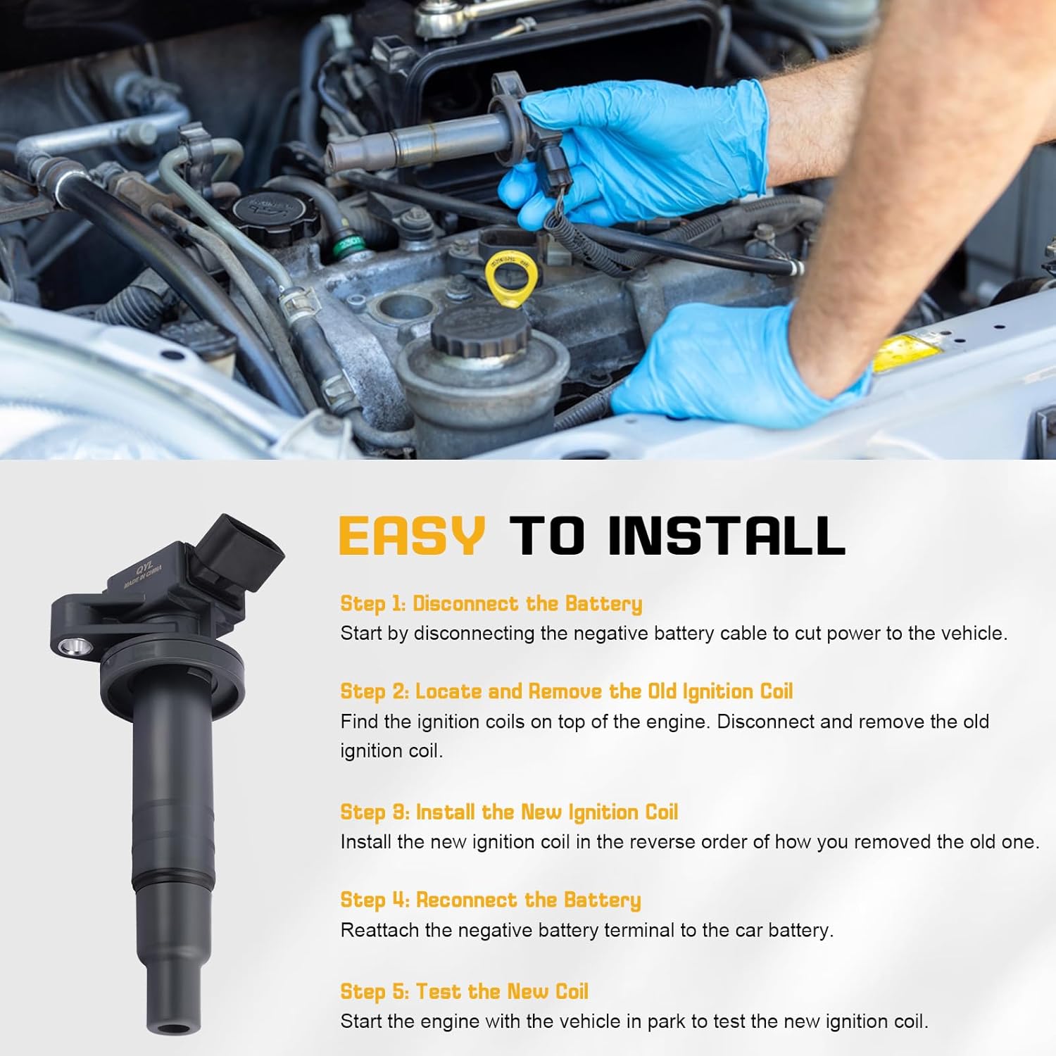3. Instale as Novas Bobinas: Coloque as novas bobinas QYL no lugar das antigas, assegurando que estejam bem fixadas. Conecte os conectores elétricos de forma segura.