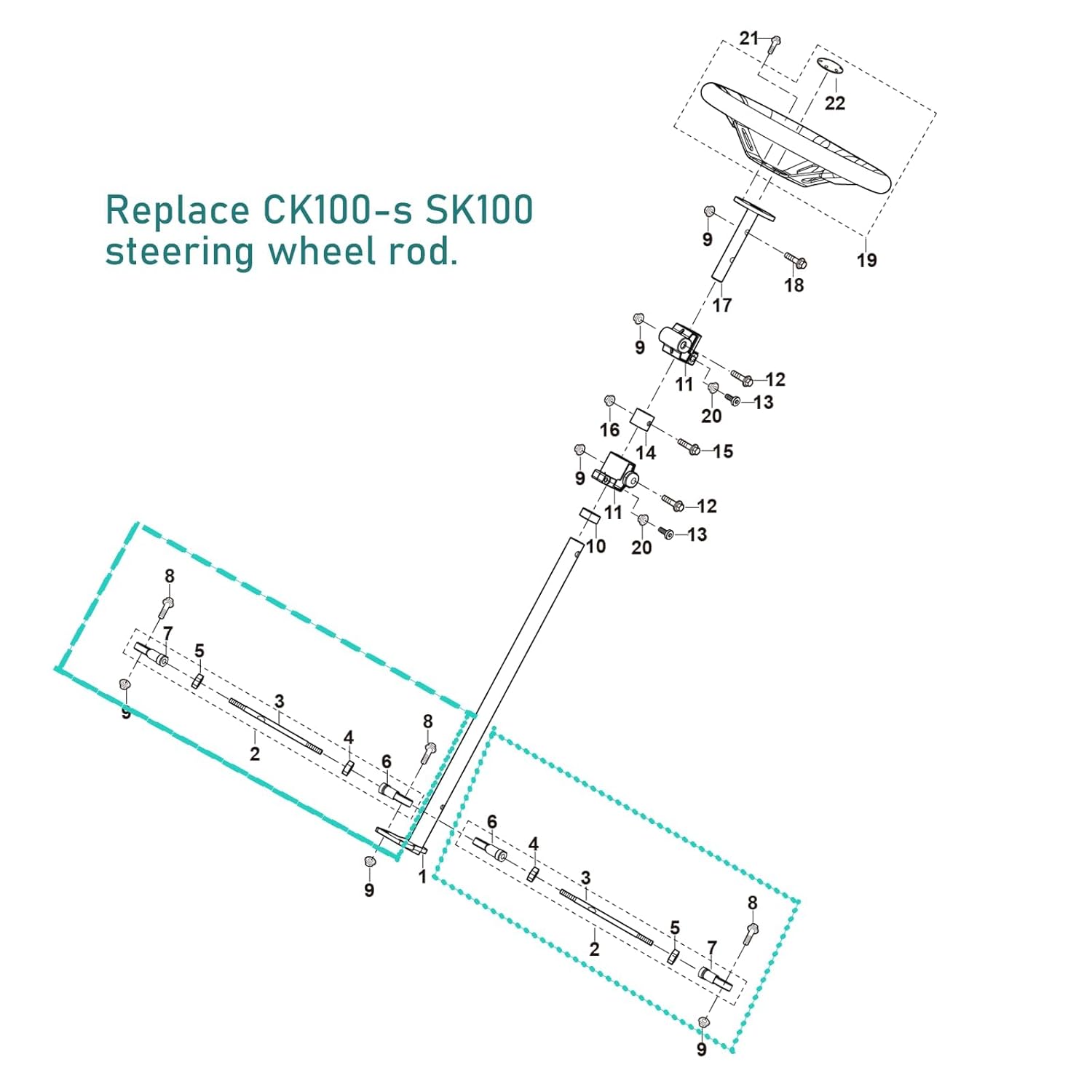 Para instalar o QYMOTO Coleman CK100-S SK100 Steering Wheel Rod, comece desconectando a bateria do go-kart para evitar qualquer risco elétrico. Em seguida, remova o antigo braço de direção, soltando as juntas esféricas com uma chave apropriada. Instale o novo braço de direção, conectando as juntas Heim nas extremidades do eixo de direção. Certifique-se de apertar os parafusos adequadamente para garantir uma fixação segura. Após a instalação, reconecte a bateria e teste a direção do go-kart em um ambiente seguro antes de utilizá-lo em pista.
