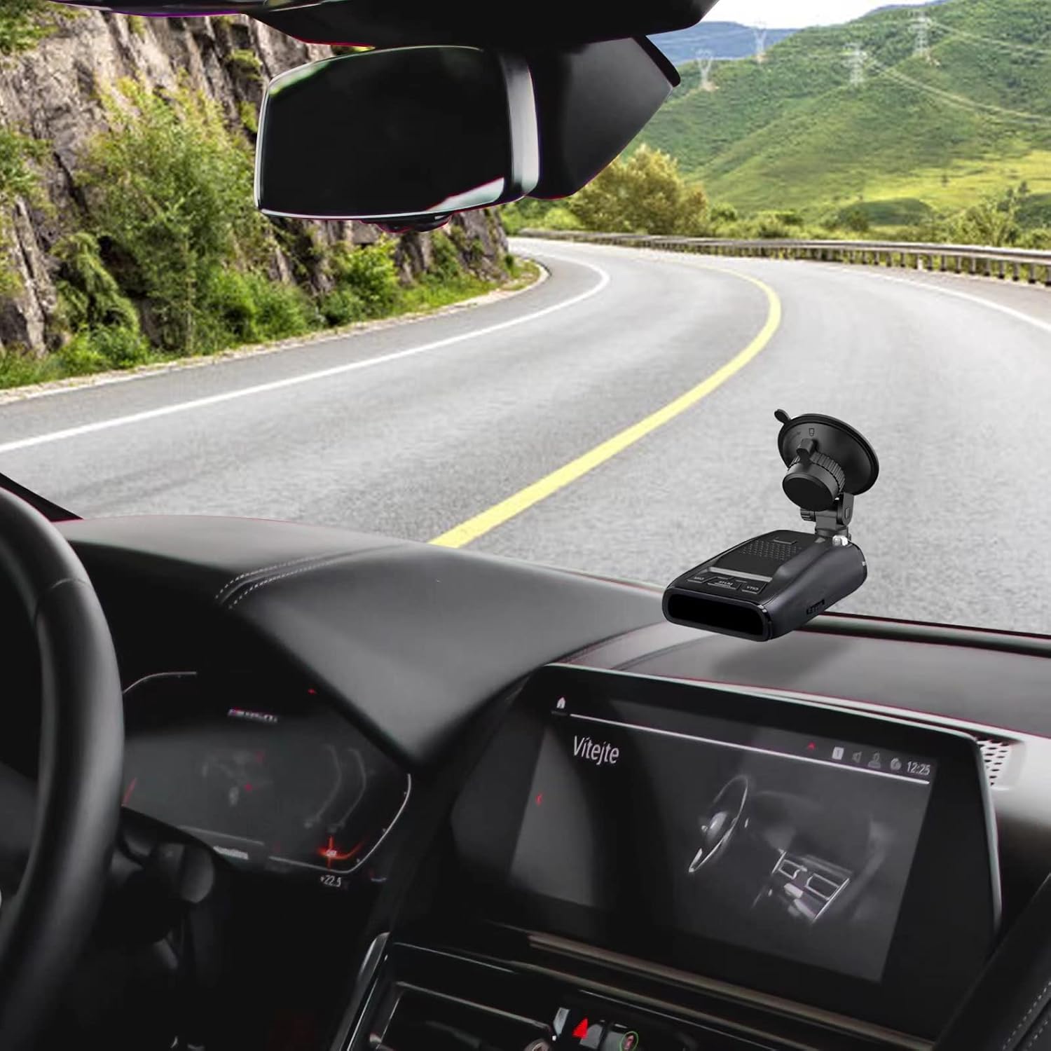 O design do suporte é simples e intuitivo, com um sistema de ventosa que possui interruptores rotativos e botões de ajuste para otimizar a detecção do radar. Durante a condução, o suporte não vibra nem balança, proporcionando uma experiência de uso estável e confiável. Além disso, é fácil transferir o detector para um segundo carro, tornando-o uma solução prática para motoristas que utilizam mais de um veículo.