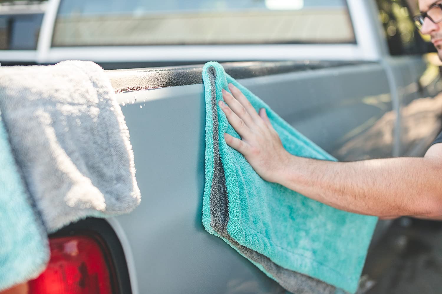 1. Para a Toalha de Secagem: Após a lavagem do veículo, utilize a toalha de secagem PREMIUM DOUBLE-TWIST LOOP para remover a água. Comece pela parte superior do carro e desça, aplicando uma leve pressão para maximizar a absorção. Evite esfregar para não arranhar a pintura.