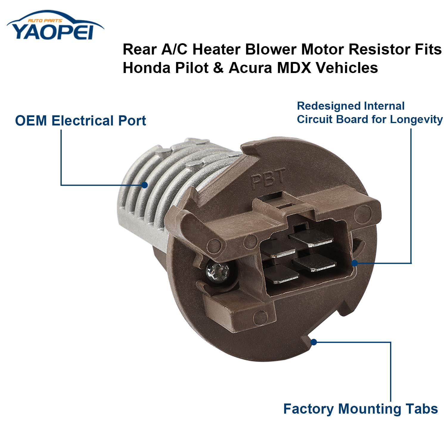 - VEÍCULOS COMPATÍVEIS: O resistor do motor do ventilador traseiro é compatível com os modelos Honda Pilot de 2003 a 2008 e Acura MDX de 2001 a 2006. Para mais detalhes sobre o produto, consulte as informações abaixo.