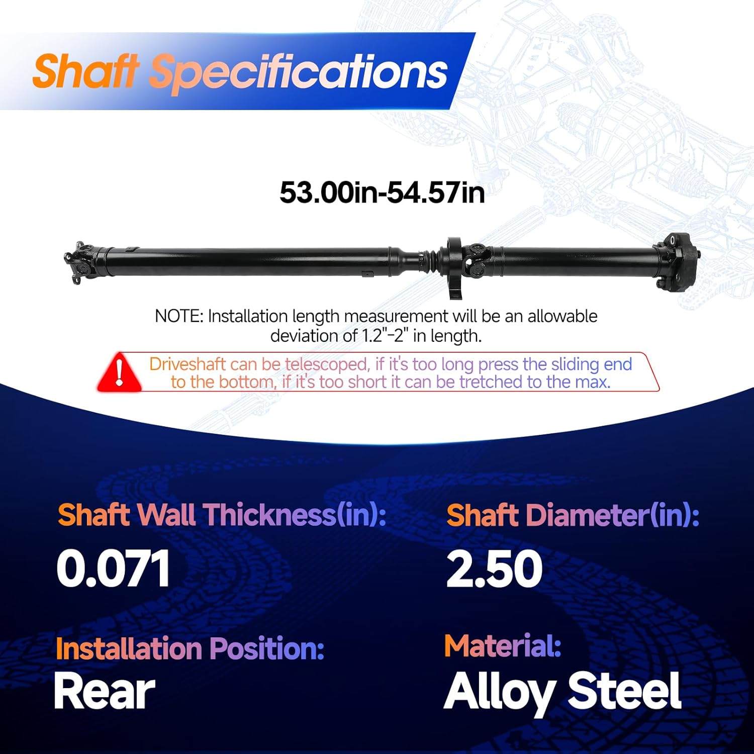– Comprimento de Instalação (Mínimo): 52.99 in