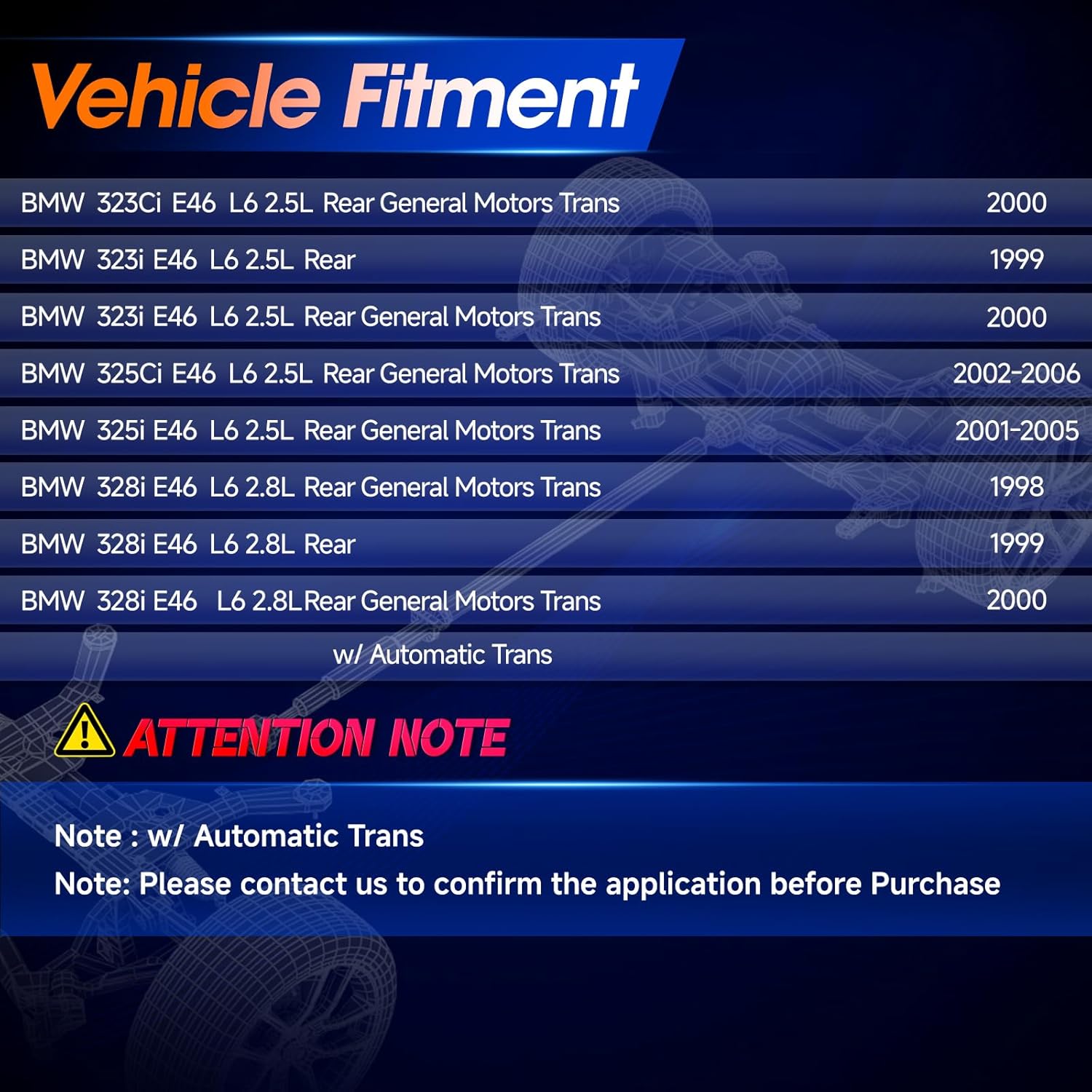 – BMW 328i E46 (1998 & 2000) L6 2.8L (Transmissão General Motors)
