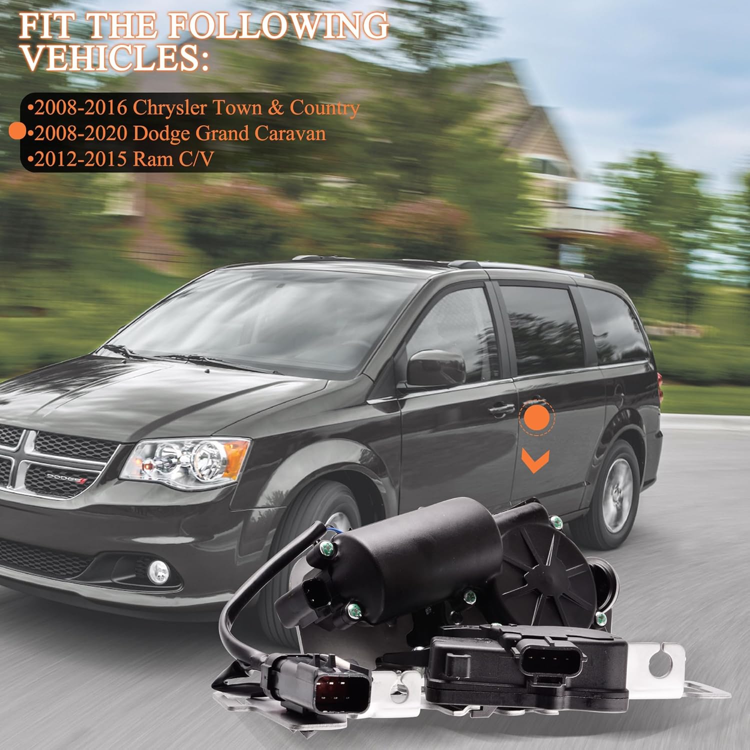 Resposta: O atuador é compatível com Chrysler Town & Country (2008-2016), Dodge Grand Caravan (2008-2018) e Ram C/V (2012-2014). Verifique os números de peça para garantir a compatibilidade.