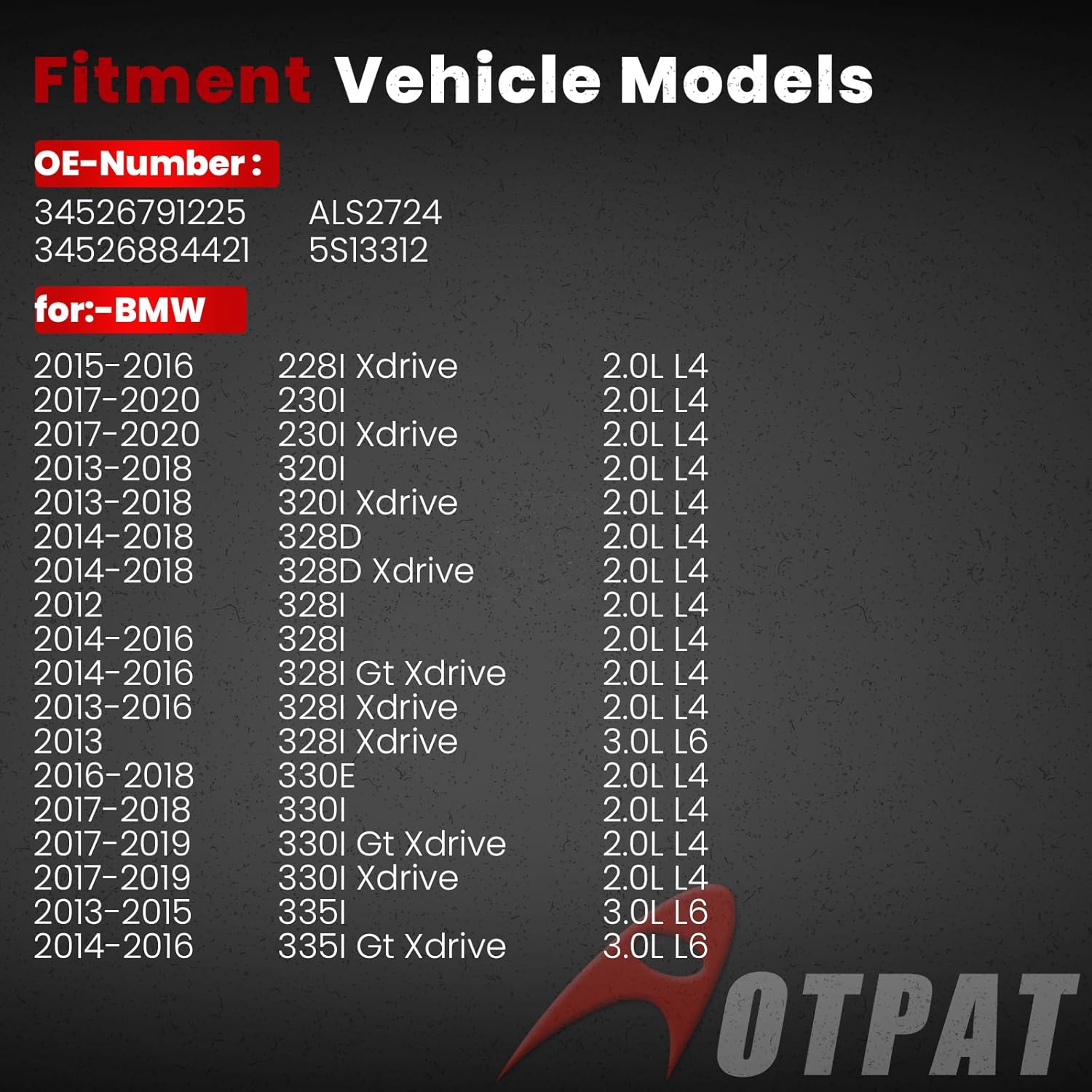 O Sensor de Velocidade da Roda ABS Traseiro Esquerdo ou Direito é um componente essencial para garantir a segurança e a eficiência do sistema de frenagem dos veículos BMW. Compatível com uma ampla gama de modelos, incluindo o BMW 230I, 320I, 328I, 330I, 335I, 340I, 428I, 430I, 435I, 440I, M235I, M240I e suas variantes Xdrive e GT, fabricados entre 2013 e 2020, este sensor é projetado para atender tanto motores de 2.0L L4 quanto de 3.0L L6.