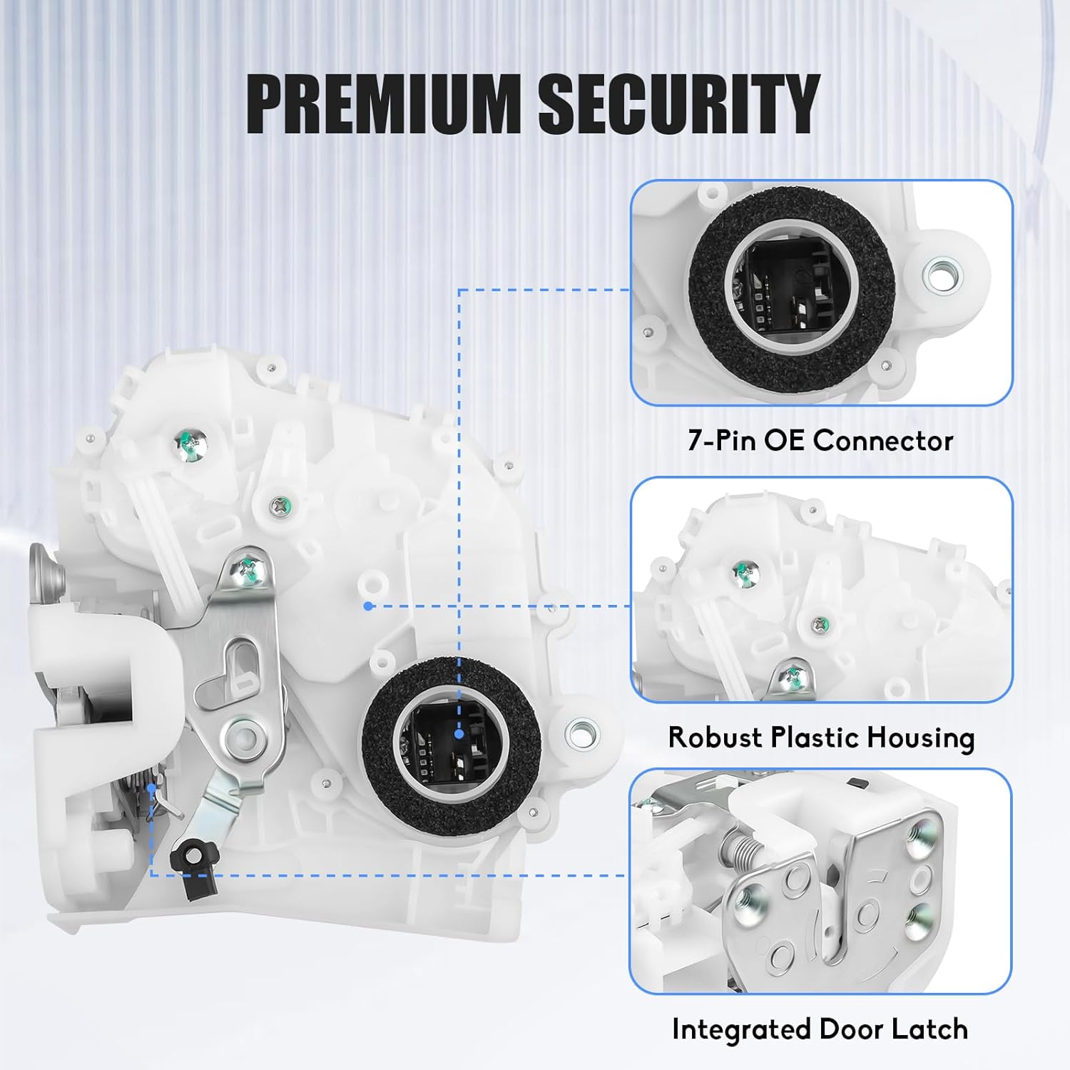 - Segurança: A substituição rápida de um fecho de porta traseira danificado é crucial. Certifique-se de que o atuador atenda aos padrões OEM para garantir um encaixe e desempenho perfeitos. Nossa montagem de fecho possui um mecanismo anti-furto que aumenta a segurança do seu veículo.