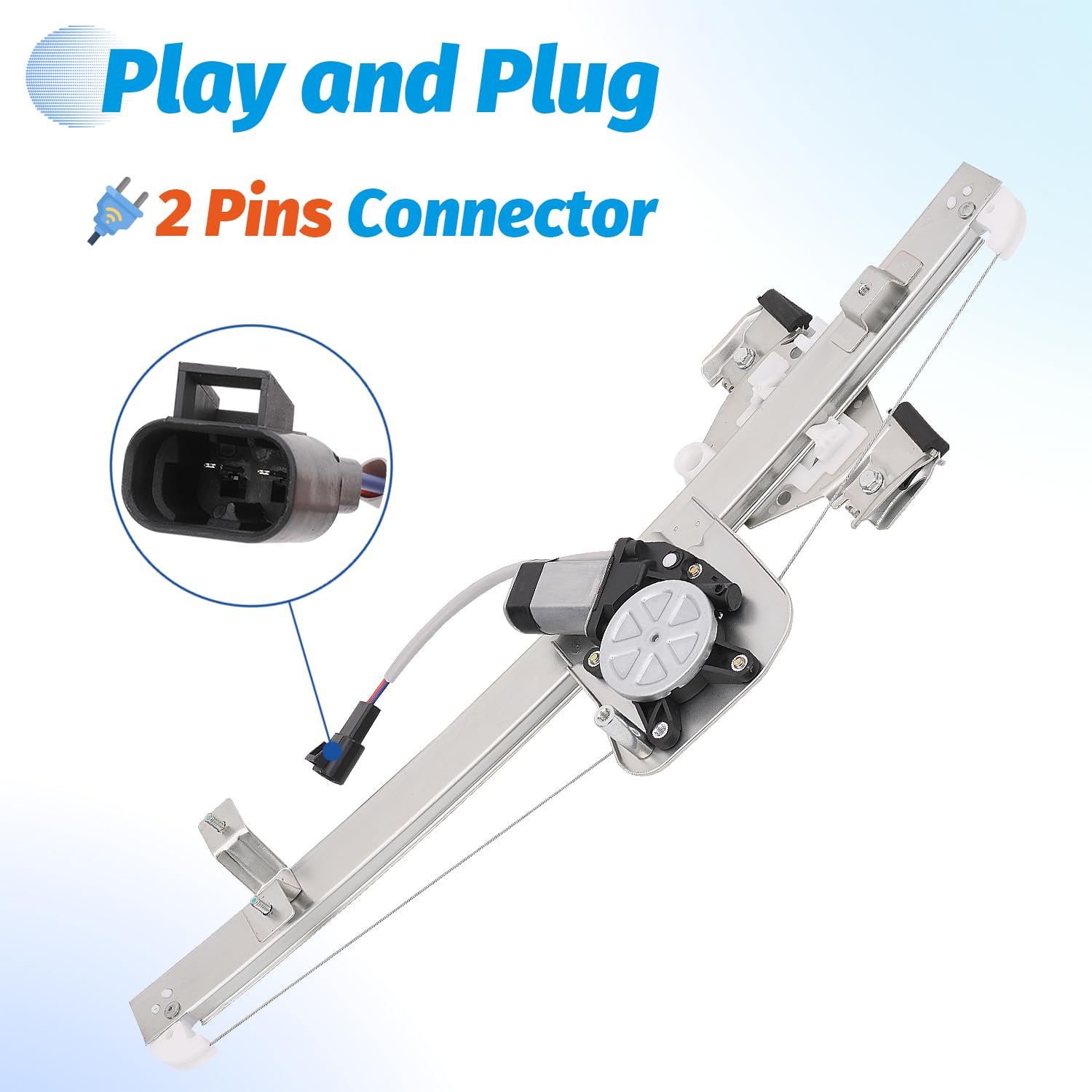 – Conector: Equipado com um conector de terminal de 2 pinos, permitindo uma instalação plug and play, facilitando a substituição do regulador de janela sem complicações.