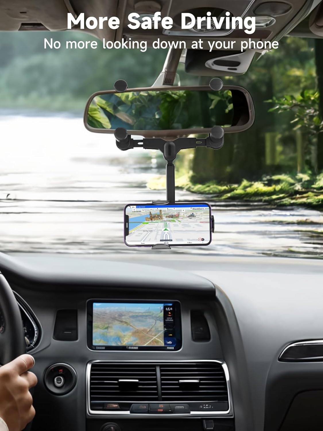 “I recently purchased the Rear View Mirror Phone Holder, and it’s been a game-changer! The 360° rotatable and retractable design allows for effortless adjustments, making it easy to find the perfect angle while driving. It securely fits my phone, and the universal compatibility works great for both my iPhone and my partner’s Samsung. The mount is sturdy and doesn’t wobble, even on bumpy roads. Highly recommend this for anyone who needs a reliable and convenient car phone holder!”
