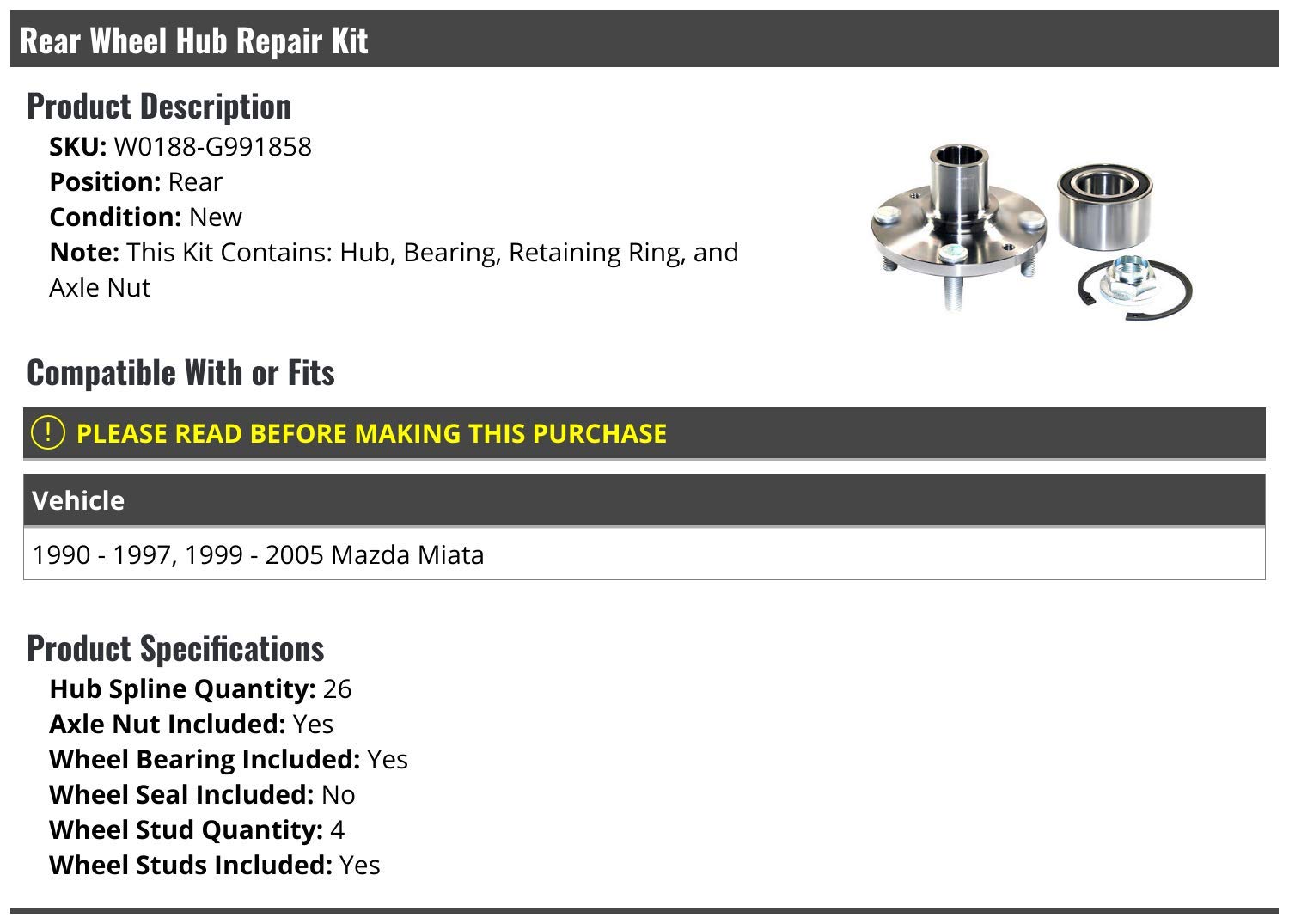 Kit de Reparo do Rolamento do Cubo Traseiro – Compatível com Mazda Miata 1990-1997, 1999-2005