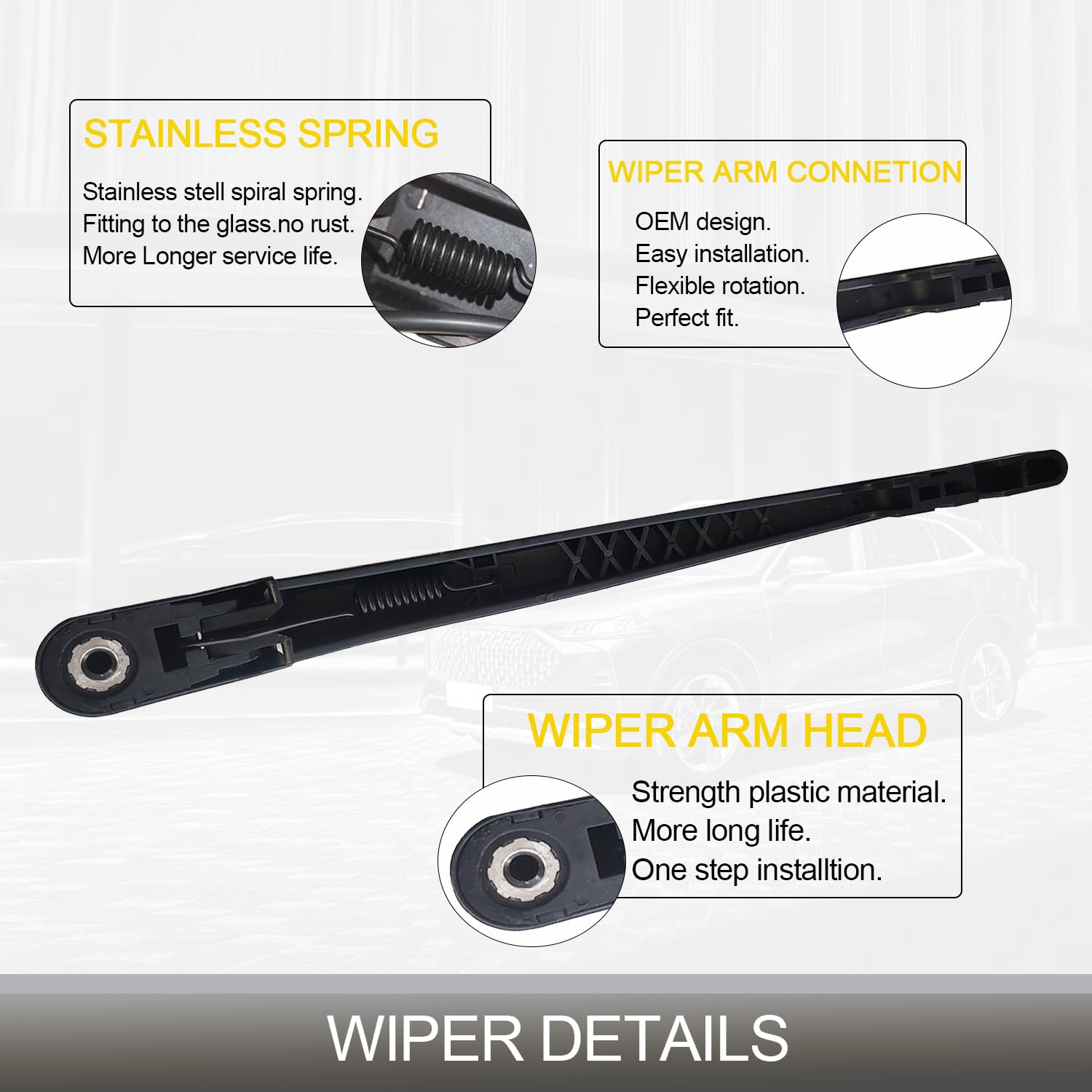 – Pacote Inclui: 1 x Braço do Limpador Traseiro, 1 x Lâmina do Limpador. Uma substituição perfeita para manter o vidro traseiro livre de água e sujeira.
