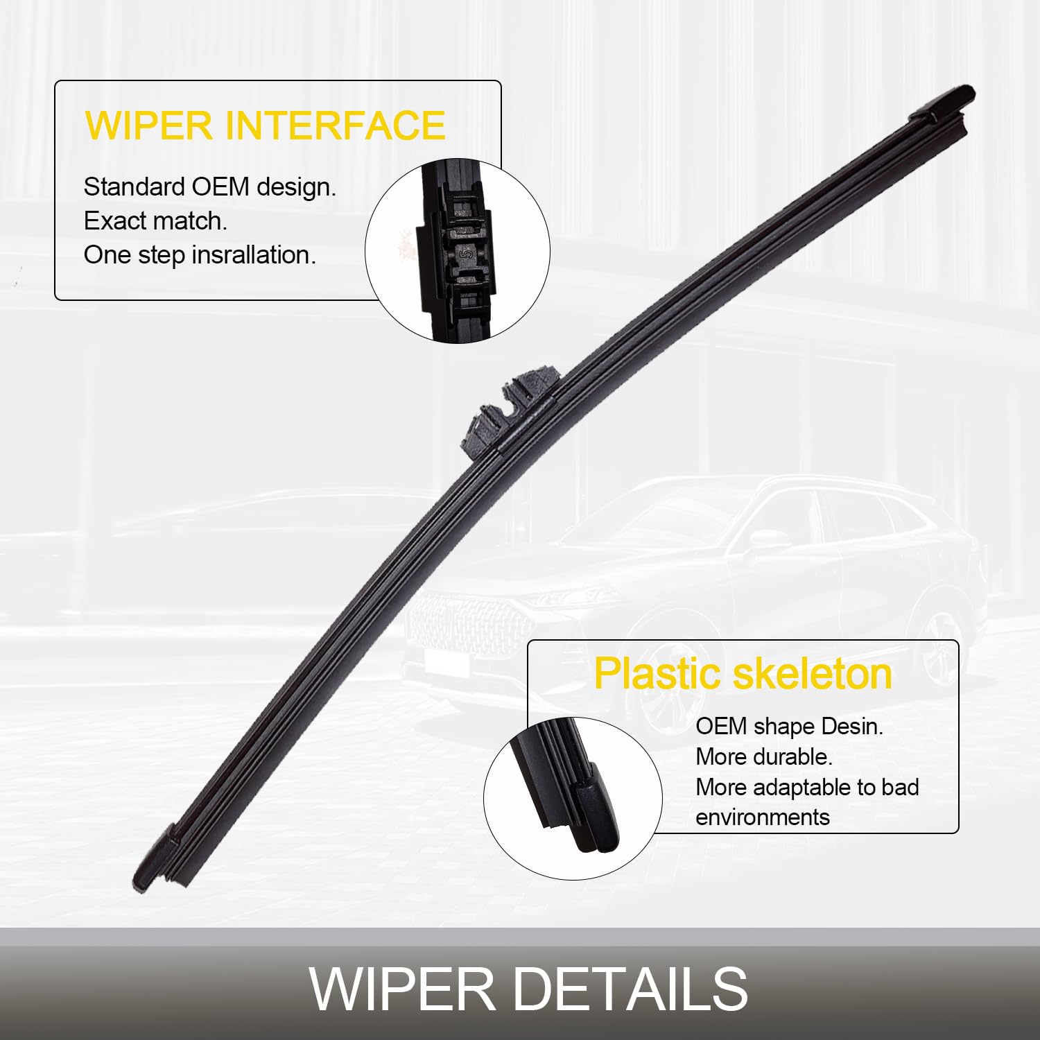 A instalação é simples e o design atende ou supera os padrões OEM, garantindo um encaixe seguro e uma instalação descomplicada. Ideal para proprietários de BMW X5, este produto também é compatível como substituição para lâminas de limpador traseiro de Audi Q5 ou Honda Odyssey.