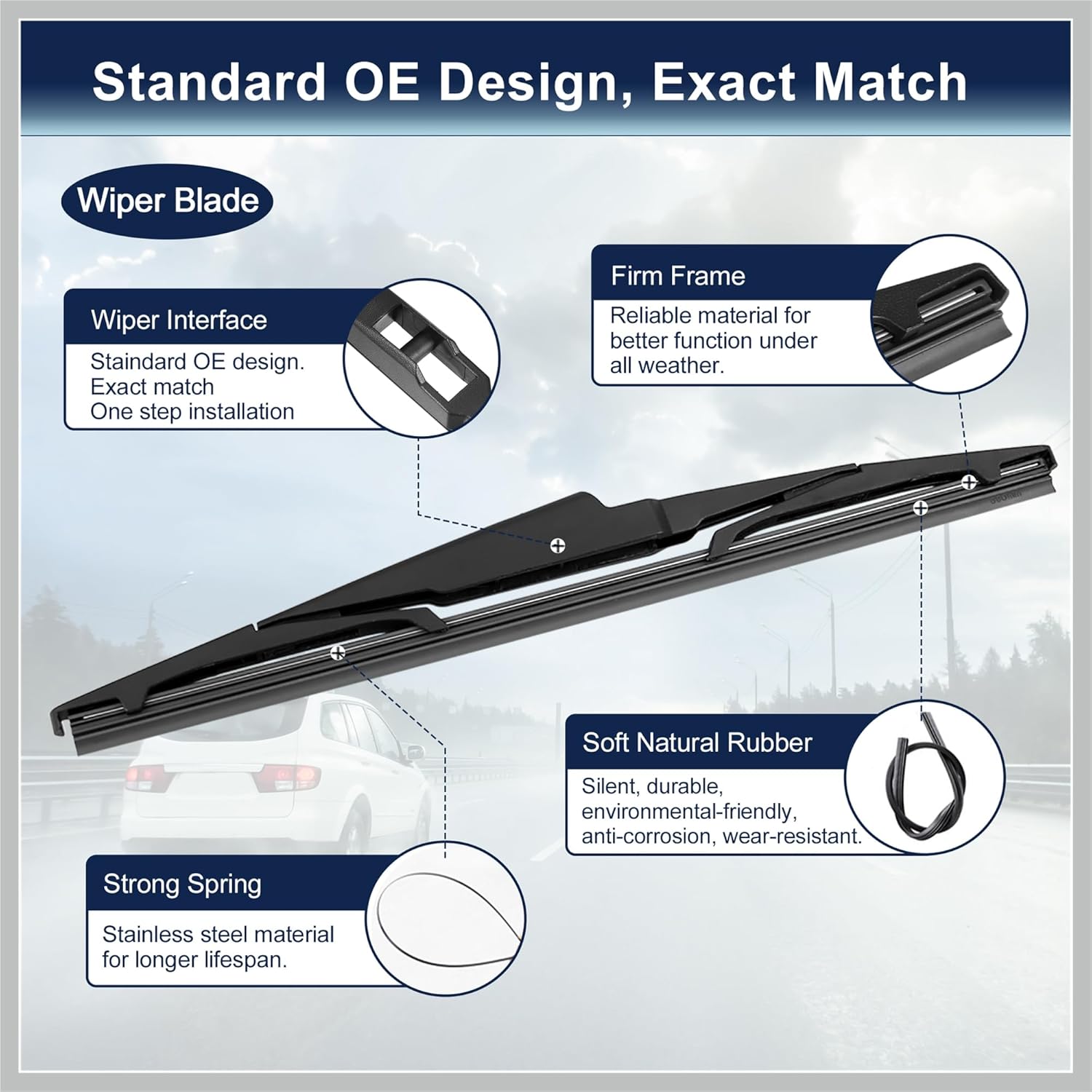 – Pacote Inclui: 1 Conjunto de Lâmina e Braço do Limpador Traseiro (1 lâmina de limpador, 1 braço de limpador).