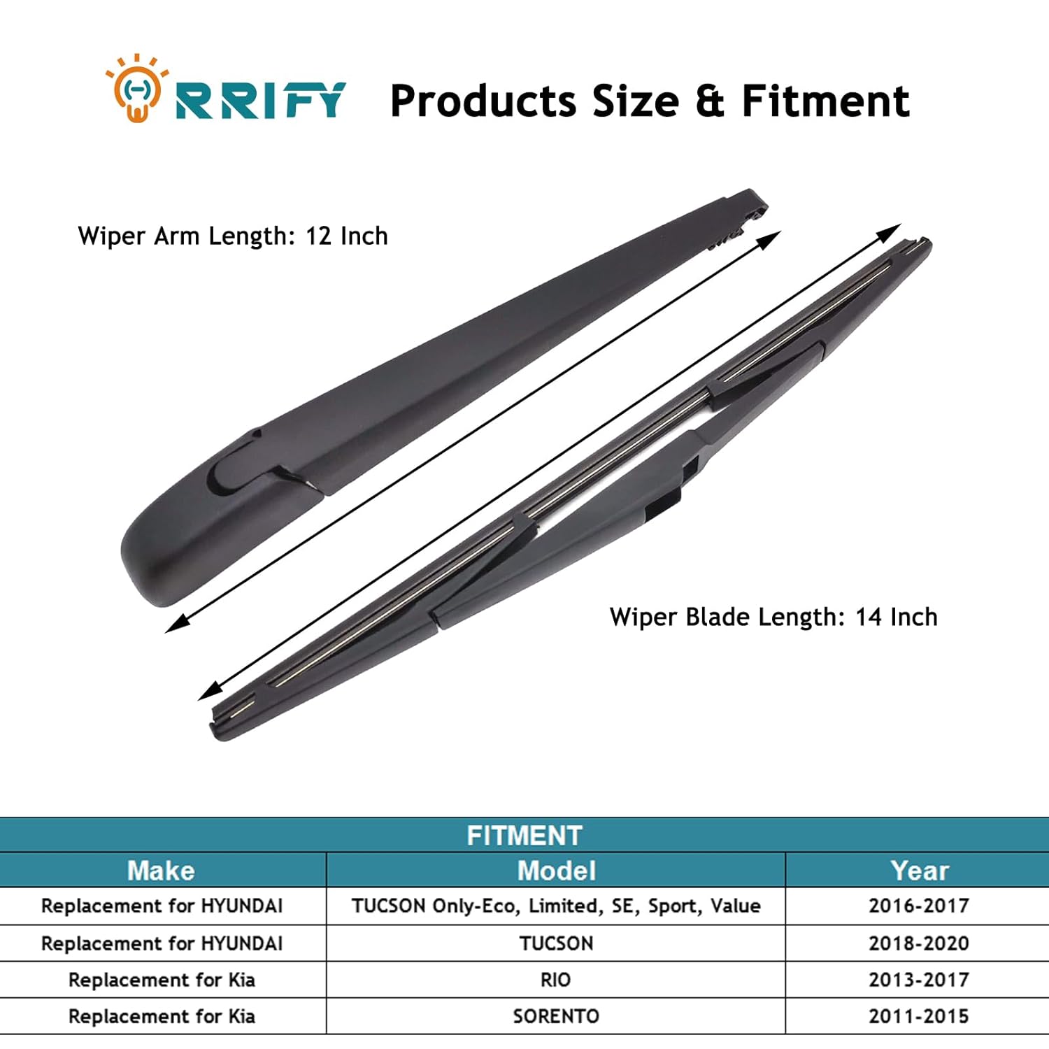- [Veículos Compatíveis] Para HYUNDAI TUCSON Only-Eco, Limited, SE, Sport, Value 2016-2017, para HYUNDAI TUCSON 2018-2020, para KIA RIO 2013-2017, para KIA SORENTO 2011-2015 Conjunto de Braço e Lâmina do Limpador Traseiro.