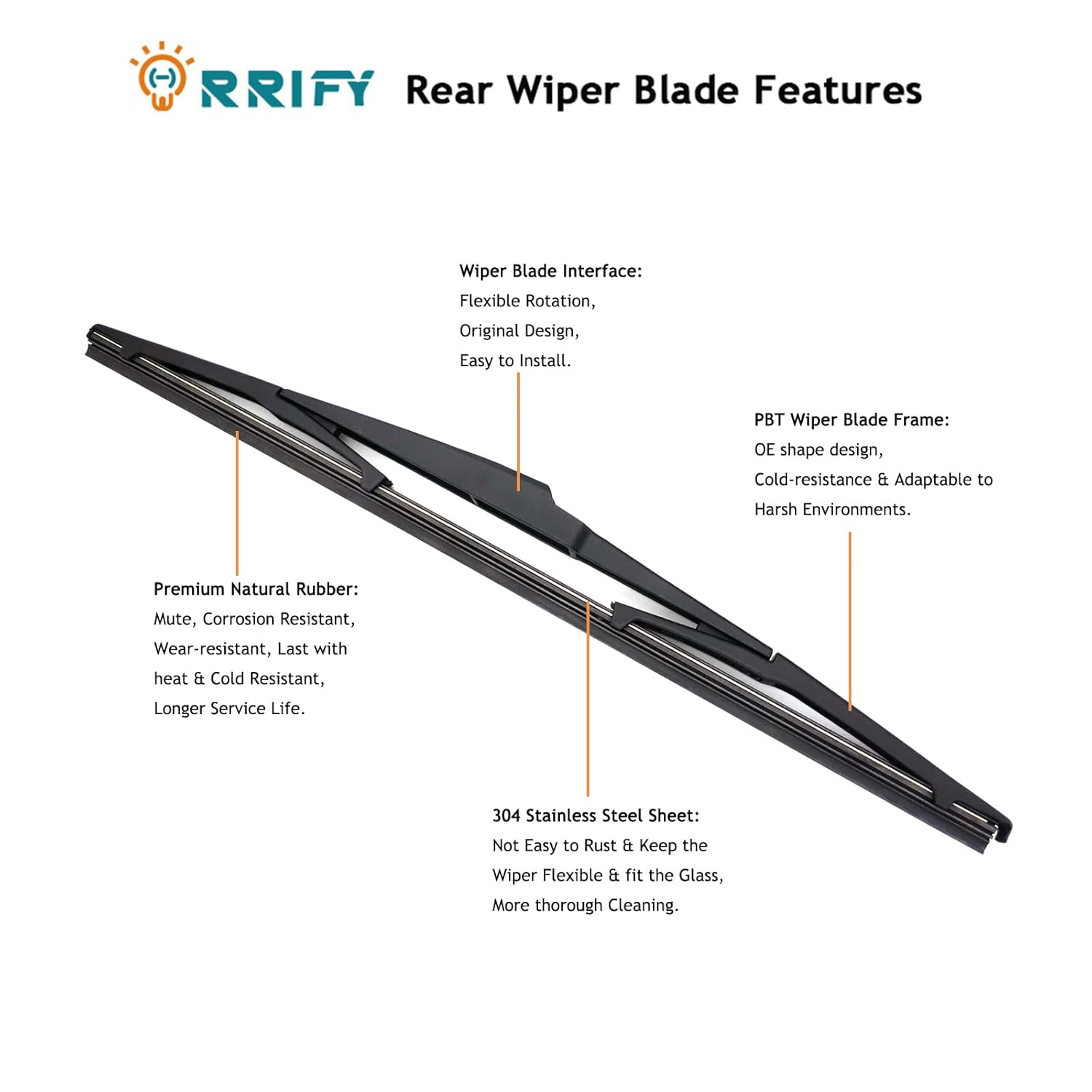 - [Material das Peças] O Braço do Limpador é feito de 100% PBT com 30% Pb, tornando-o mais durável; a Lâmina é feita de borracha natural premium que reduz ruídos e fricção, sem deixar rastros ou marcas d’água.