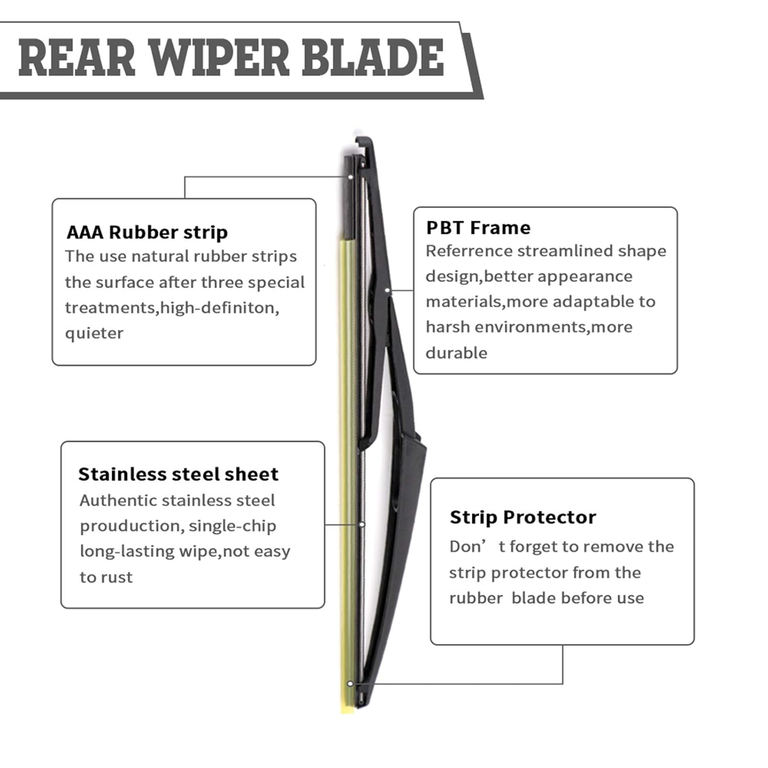 • Conteúdo da Embalagem: O pacote inclui o braço do limpador traseiro, lâmina, tampa, porca e chave, todos 100% novos, prontos para instalação.