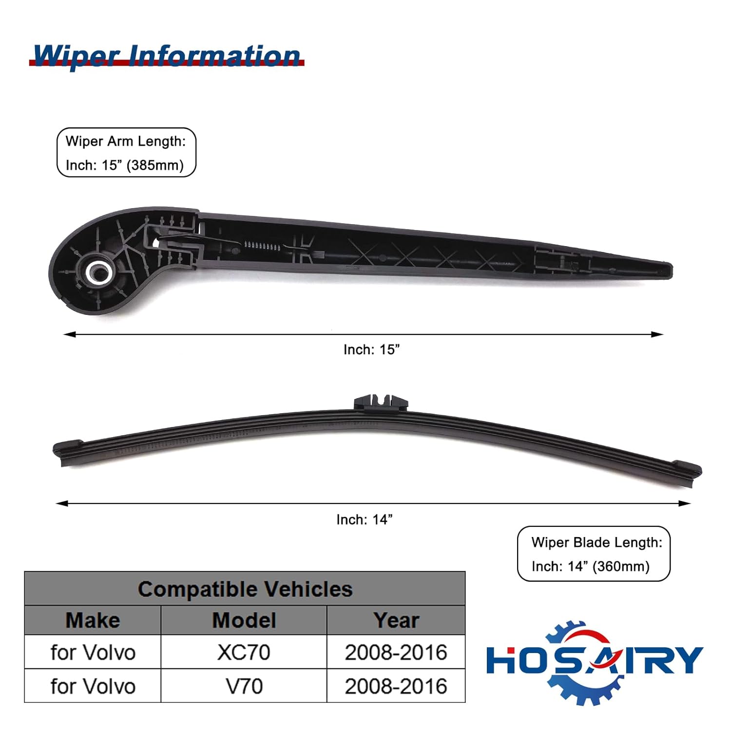 – Veículos Compatíveis: Conjunto de Braço e Lâmina do Limpador Traseiro para Volvo XC70 (2008-2016) e Volvo V70 (2008-2016).