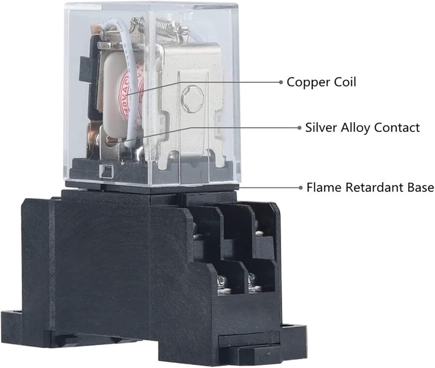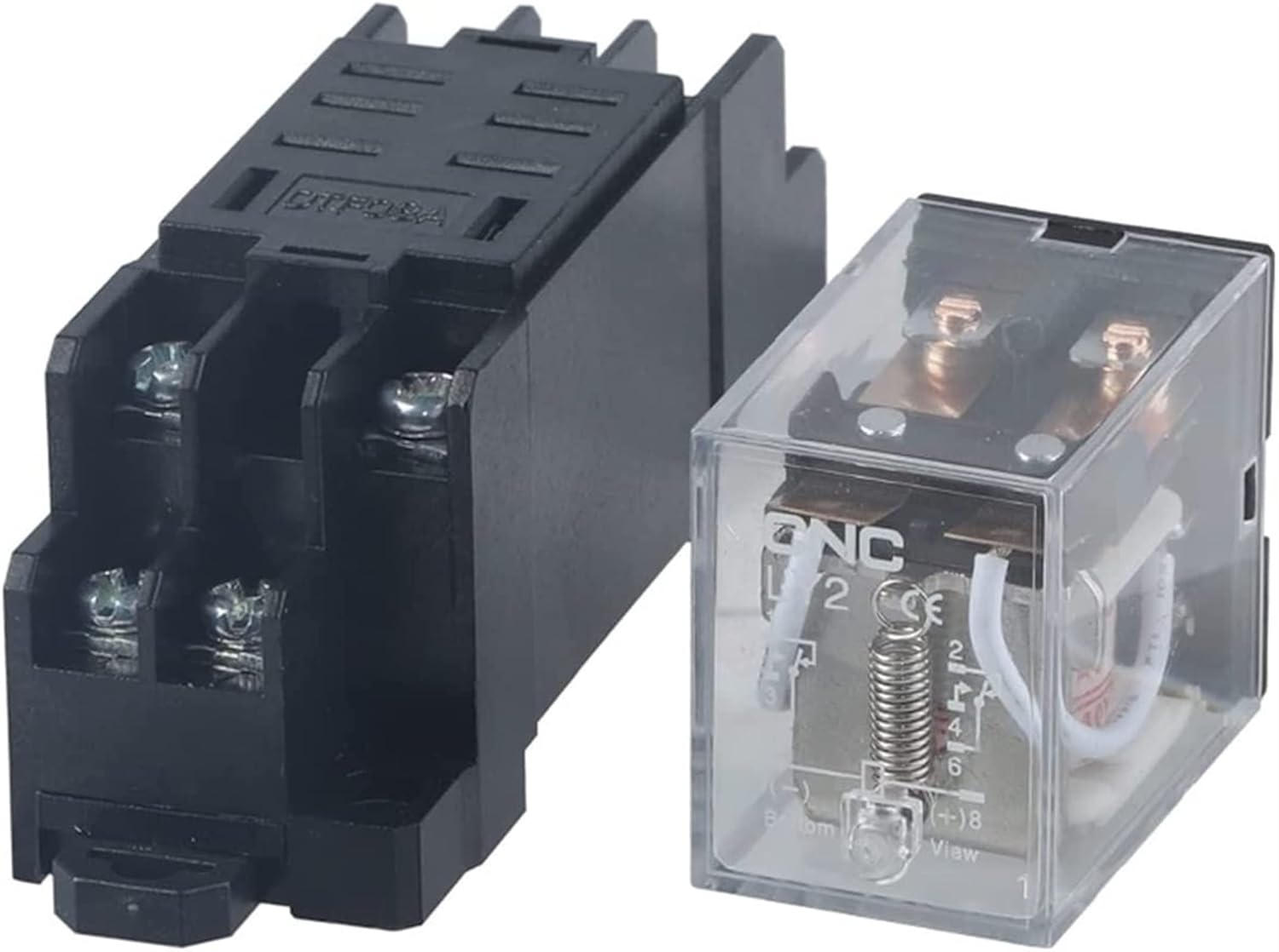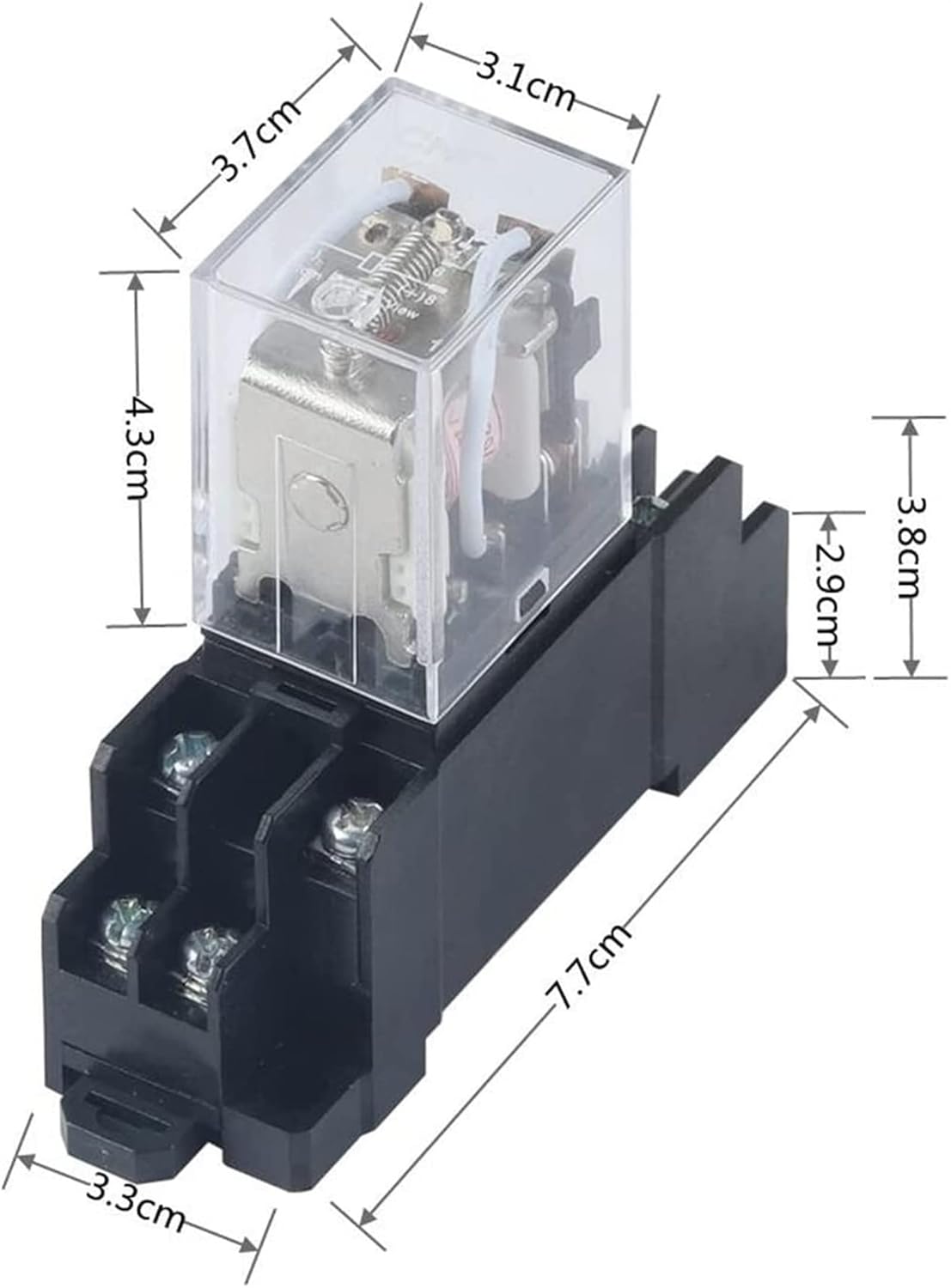 Relé Geral LY2 DPDT 1 Set com Soquete – Relé de Potência DC 12V/24V e AC 110V/220V (Tamanho: 220V VAC)