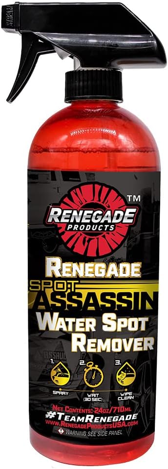 O Renegade Products Water Spot Remover é a solução definitiva para quem busca eliminar manchas de água de forma eficaz e segura. Com uma fórmula não ácida e não tóxica, este removedor de manchas de água é ideal para todos os tipos de superfícies, desde a pintura do seu carro até metais polidos, como alumínio e aço inoxidável. Apresentado em uma garrafa de 24 onças, o Renegade Spot Assassin é um produto que se destaca pela sua capacidade de neutralizar e dissolver manchas de cálcio, alcalinidade e minerais que se acumulam em sua pintura, vidro, rodas e partes metálicas polidas.
