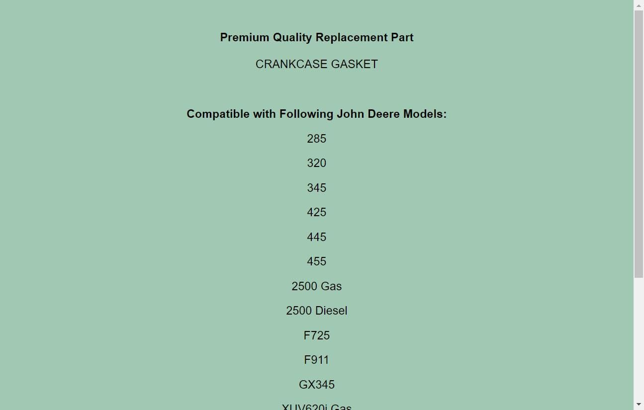 Descrição do Produto: Junta de Cárter Substituta para John Deere XUV620i XUV625i Gas Gator 6×4 HPX Gas M139016