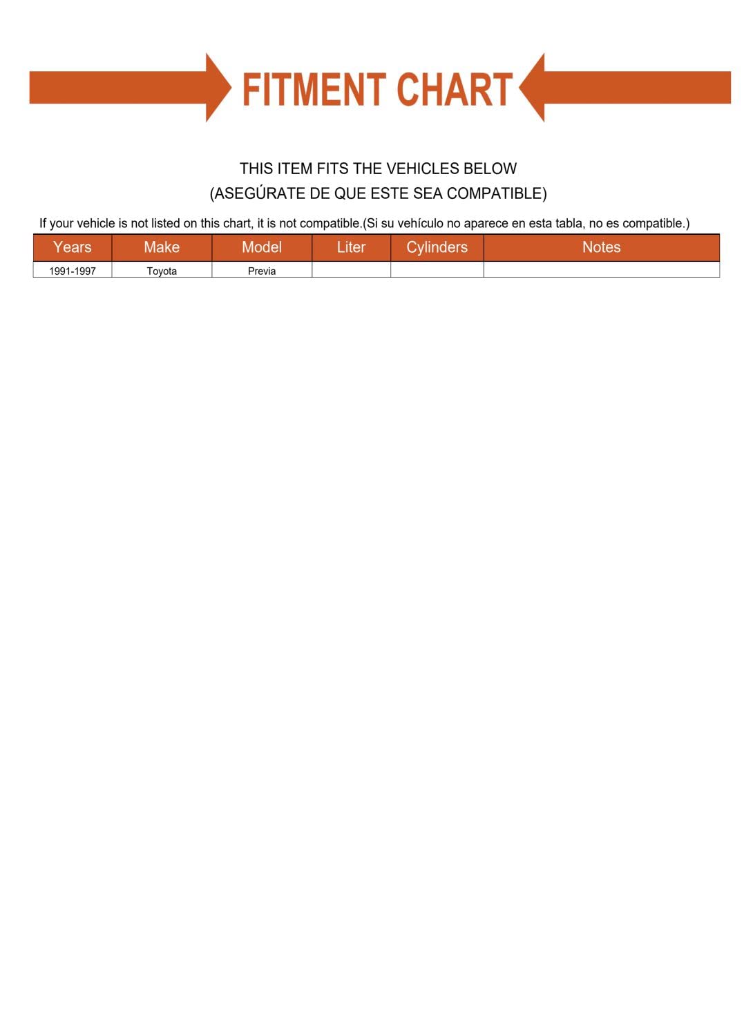 – Compatibilidade: Específico para modelos Toyota Previa de 1991 a 1997, garantindo que você tenha a peça certa para seu veículo.
