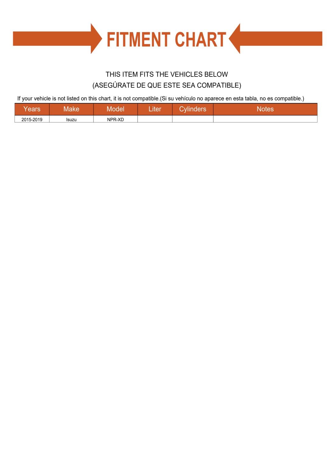 – Compatibilidade: Projetado especificamente para Isuzu NPR-XD de 2015 a 2019.