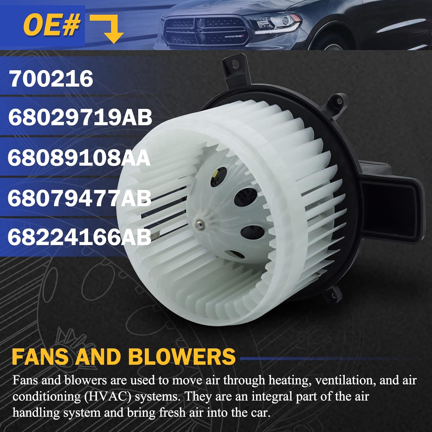 17 avaliações para Motor do Ventilador do Aquecedor HVAC Substituto com Gaiola do Ventilador OEM# 700216 68029719AB – Compatível com Chrysler Town 2008-2016