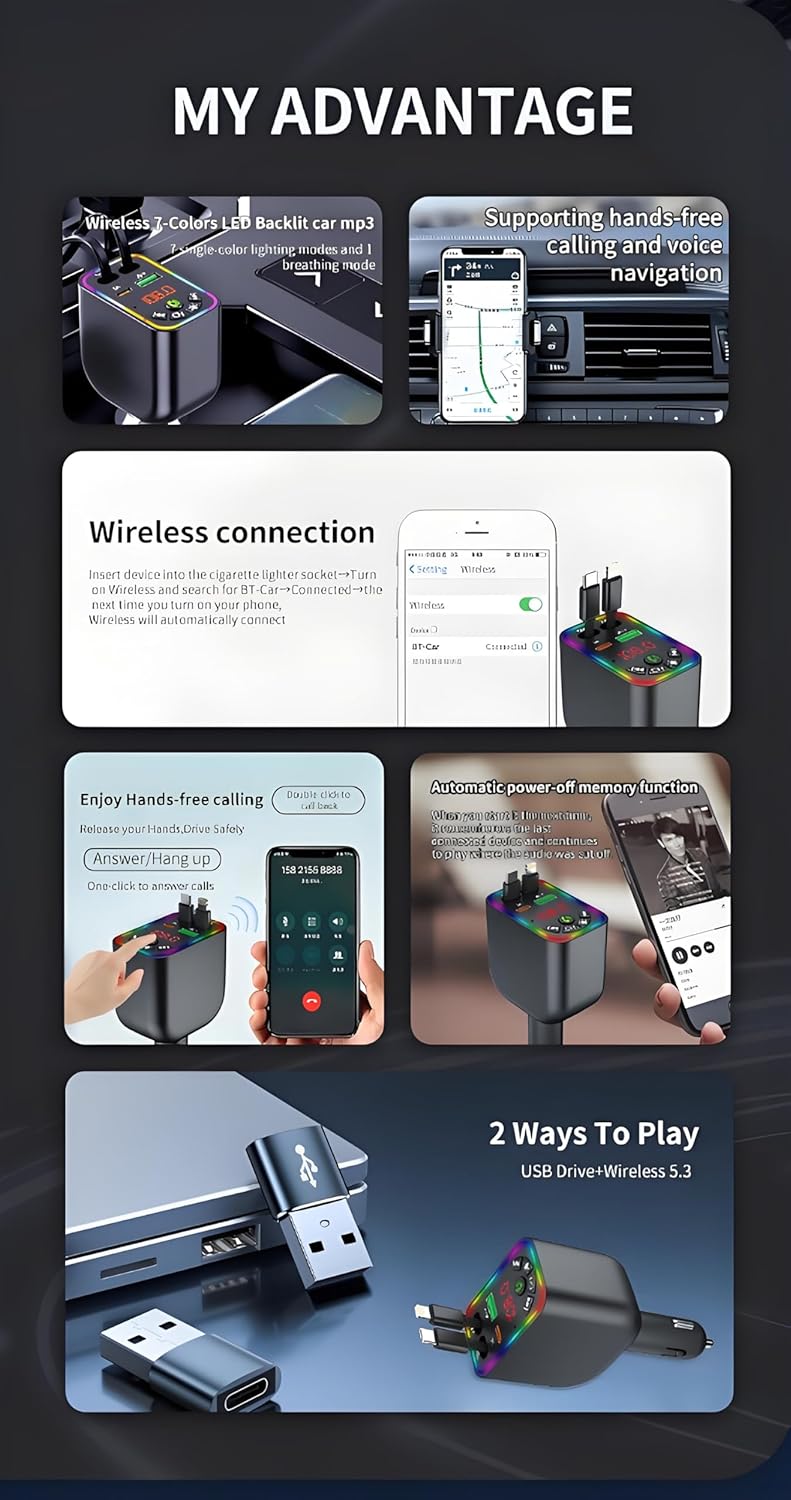 Este transmissor FM Bluetooth é projetado com múltiplas proteções contra sobrecarga, sobretensão, superaquecimento e curto-circuito, garantindo um carregamento seguro enquanto você dirige.