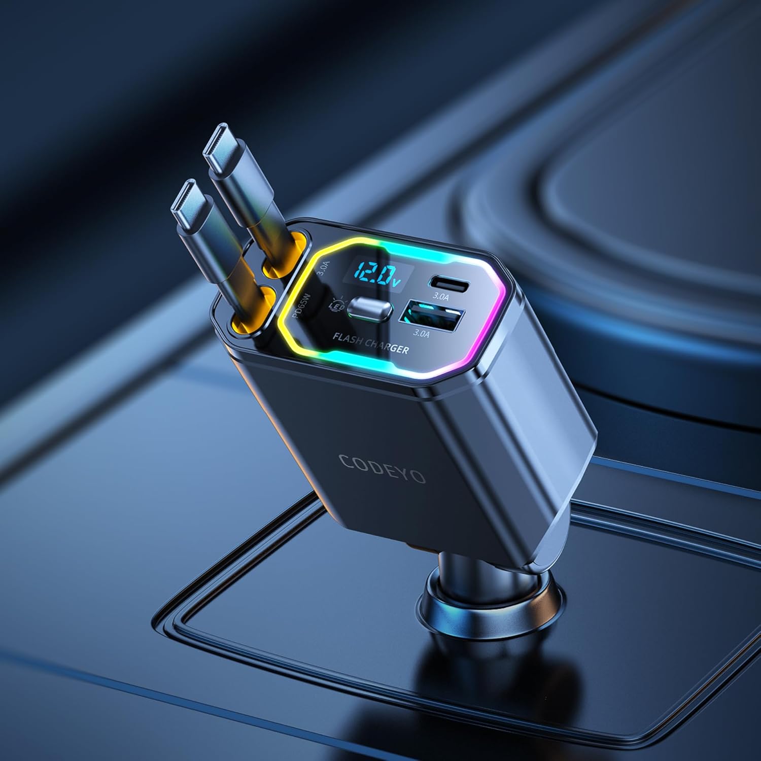 – [Compatibilidade Universal] – O carregador USB C para carro é compatível com dispositivos que suportam PD, QC3.0, AFC, MTK e FCP. O carregador retrátil 4 em 1 é compatível com as séries iPhone 16/15/14/13/12, tornando-se uma escolha versátil para usuários de iPhone. Se você está procurando um carregador para iPhone 16 Pro Max, iPhone 16 Plus ou modelos anteriores, este dispositivo oferece opções de carregamento rápido flexíveis. Ele também suporta dispositivos USB C e USB A, garantindo que todos os seus gadgets estejam cobertos, seja para acessórios de caminhão ou presentes únicos para amantes de carros.