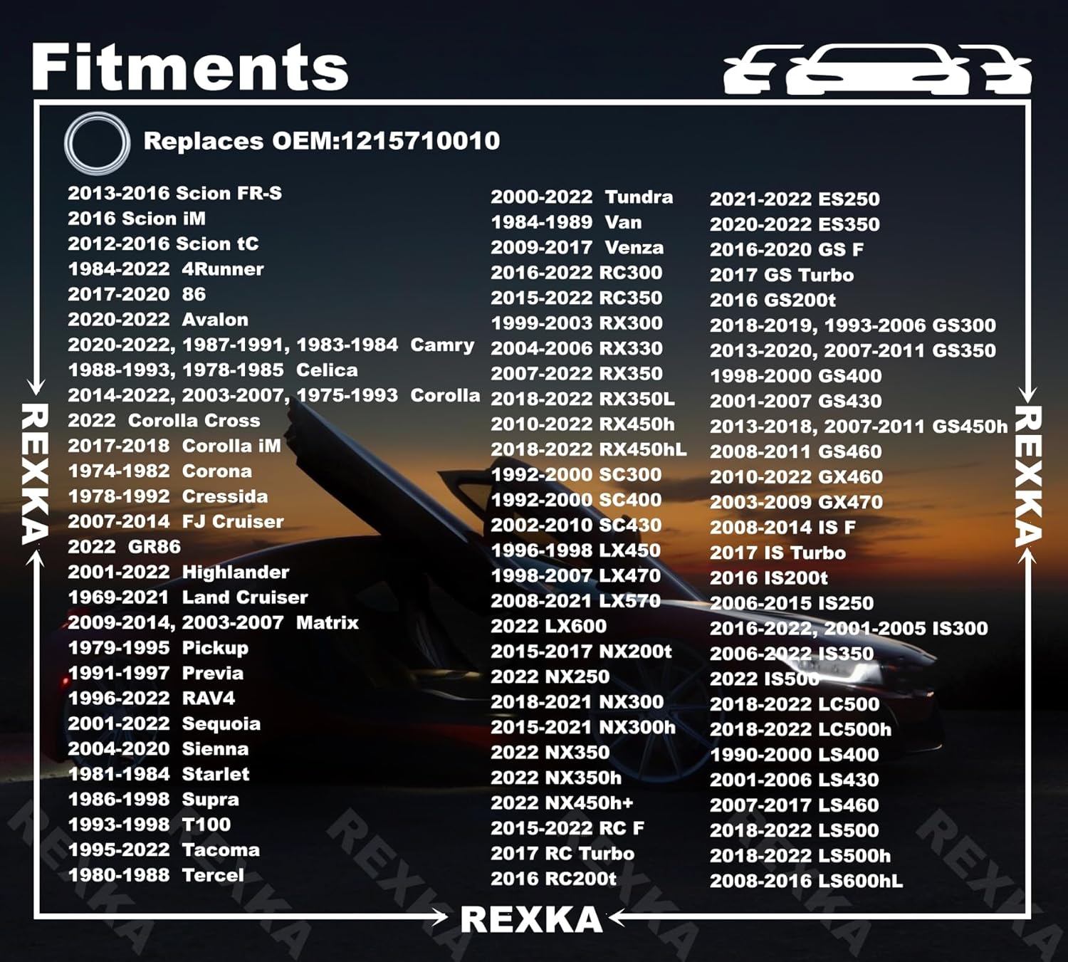 O Rexka 12pcs Transfer é um kit de gaxetas projetado especificamente para serviços de transferência e diferencial em veículos Toyota e Lexus. Este conjunto abrangente inclui componentes essenciais que garantem um desempenho ideal e uma vedação eficaz, evitando vazamentos e prolongando a vida útil do seu veículo. Com a crescente demanda por manutenção de qualidade, este kit se destaca por sua compatibilidade e durabilidade, sendo a escolha perfeita tanto para mecânicos profissionais quanto para entusiastas do “faça você mesmo”.
