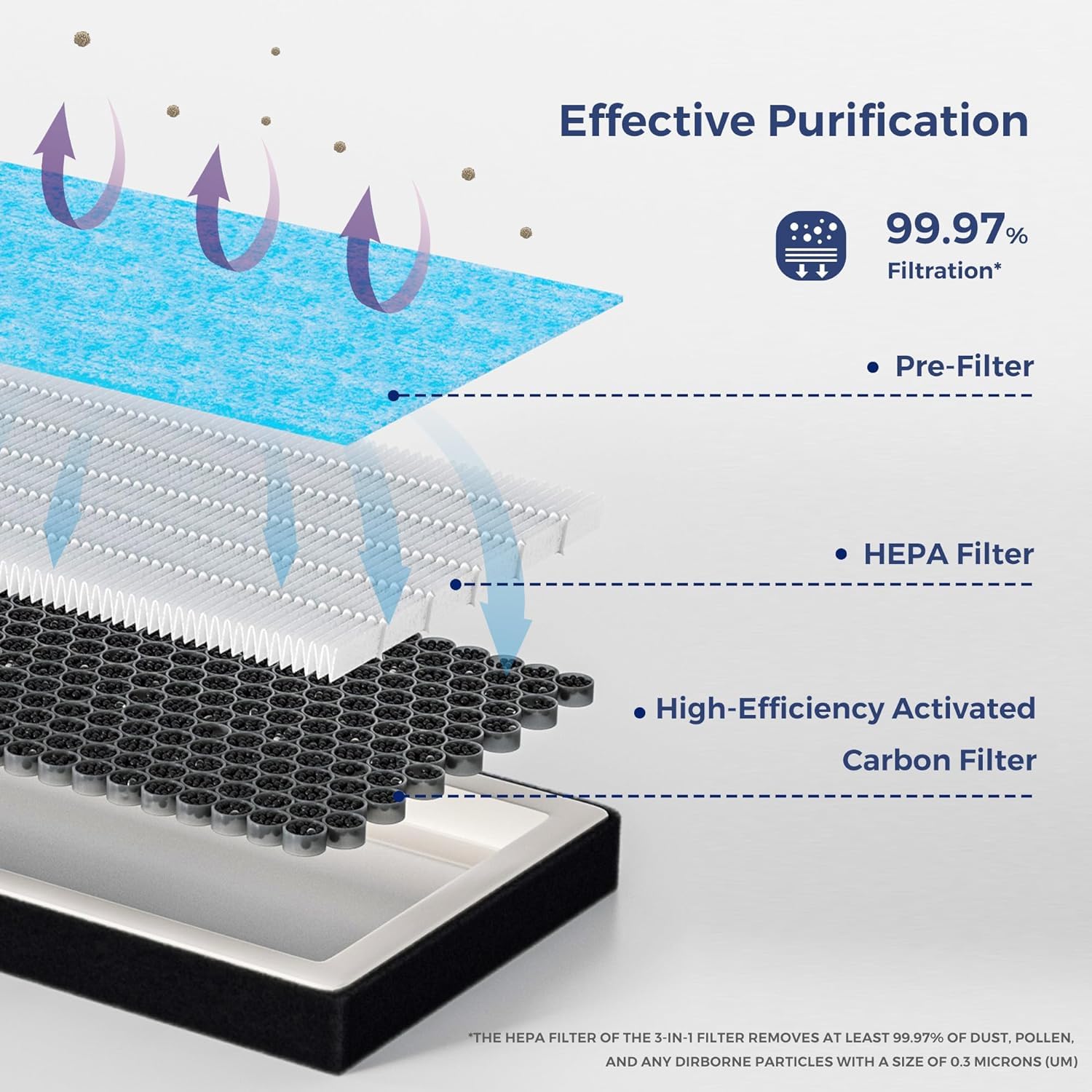 – Estrutura de Três Camadas: Camada primária, camada HEPA e camada de carvão ativado.