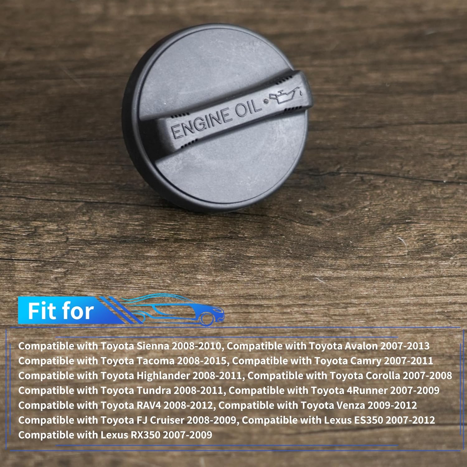 - 🚗【VEÍCULOS APLICÁVEIS】Tampão de óleo compatível com Scion tC 2005-2006, Toyota Tacoma 2005-2015, Toyota Corolla 2003-2008, Toyota Camry 2002-2011, Toyota Avalon 2005-2012, Toyota Sienna 2007-2010, Toyota Solara 2002-2006, Toyota Tundra 2005-2011, Toyota RAV4 2001-2012, Toyota Matrix 2003-2008, Toyota FJ Cruiser 2007-2009, Toyota 4Runner 2003-2009, Toyota Highlander 2001-2011, Toyota Venza 2009-2012.