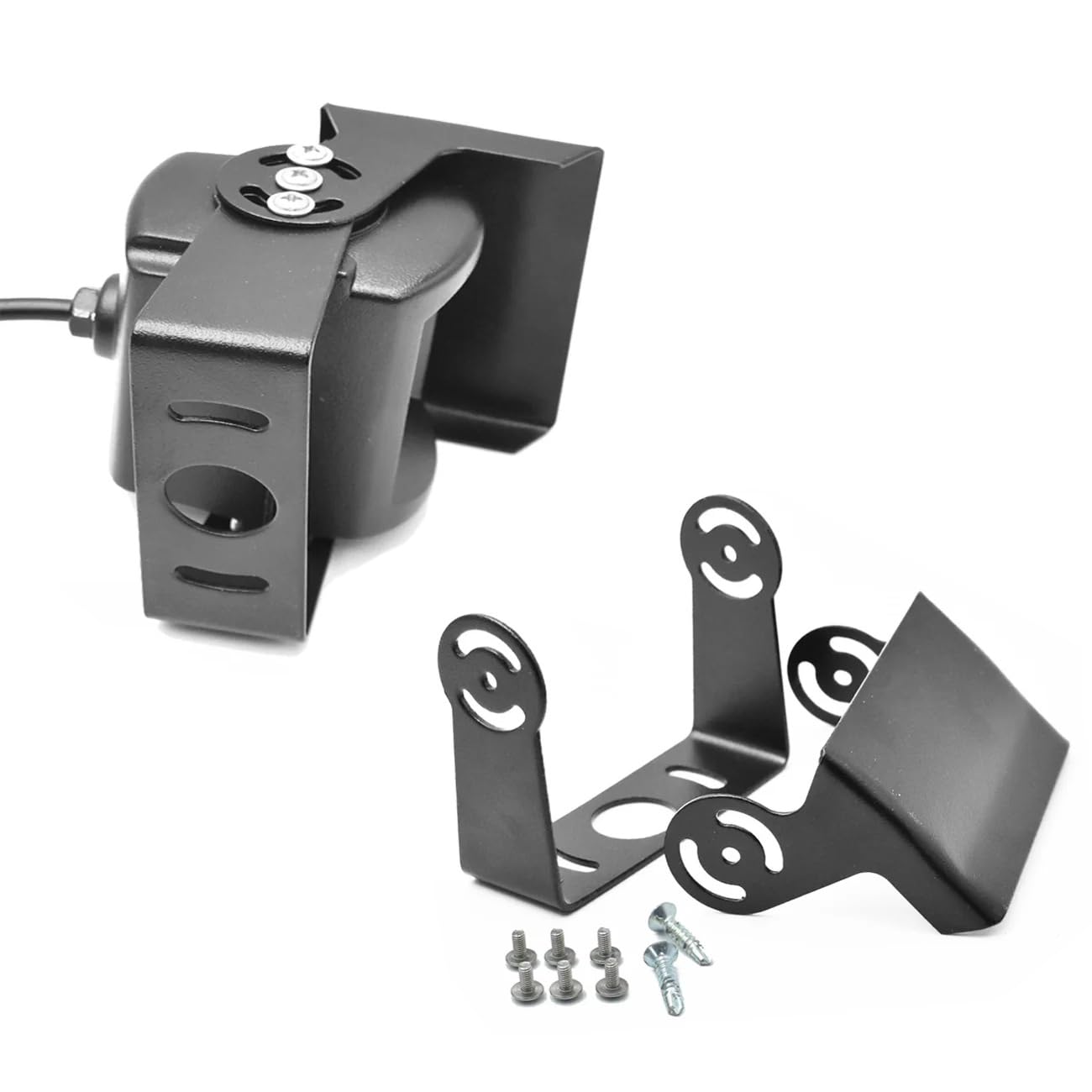A instalação é flexível, permitindo que o suporte seja montado em qualquer posição de qualquer veículo, adaptando-se perfeitamente às suas necessidades. O suporte possui um design universal e ajustável, que resolve completamente o problema de instalação de câmeras de ré, com furos de montagem e parafusos de tamanho padrão que garantem um encaixe direto.