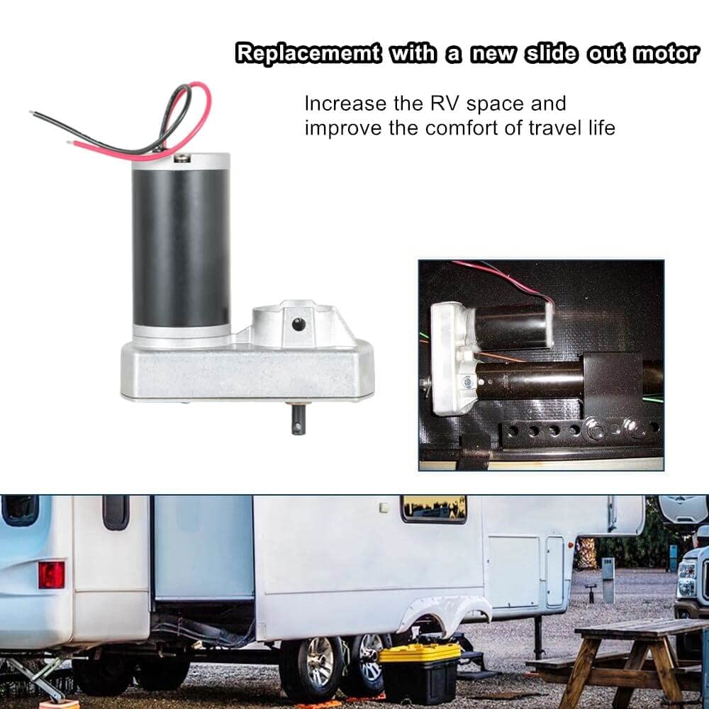 - Modelo de Adaptação – Motor Slide Out RV compatível com motores deslizantes internos de 12V DC, velocidade de 5800 RPM e corrente de 30 Amp, com relação de engrenagem de 18:1.