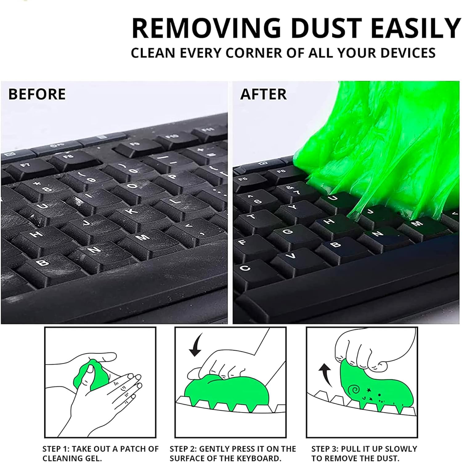 3. Pressione o gel sobre a superfície que deseja limpar, como teclados ou saídas de ar.