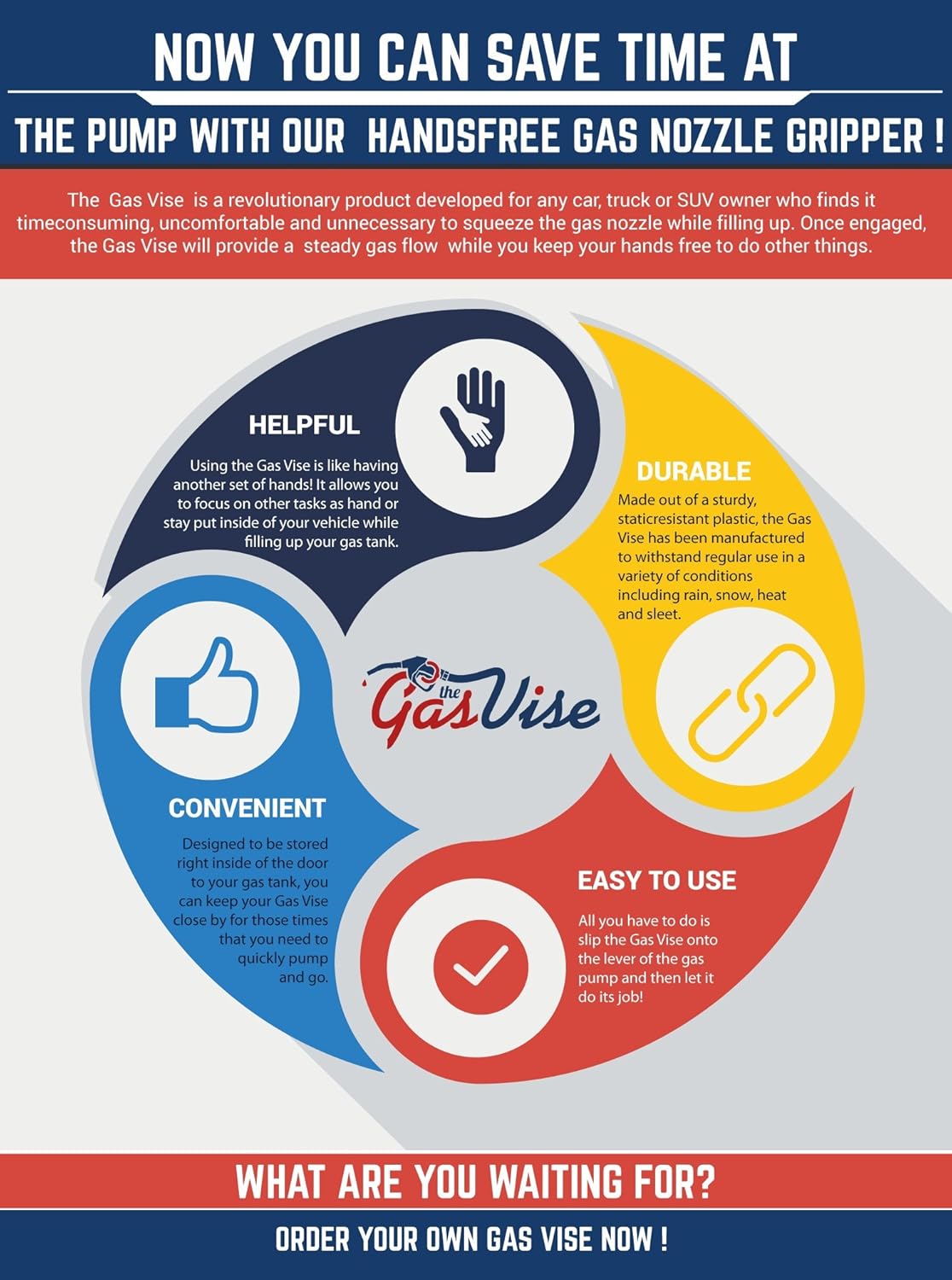 FÁCIL DE USAR – Para utilizar, basta deslizar a Vise de Gasóleo sobre o gatilho do bico da bomba e deixá-la fazer o trabalho. É simples e prático!